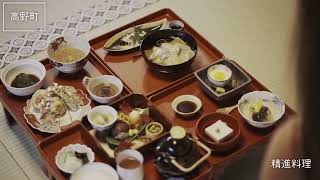- 紀伊半島のほぼ中央に位置し、標高約1,000m級の峰々に囲まれた盆地に広がる「高野山」。麓には、表玄関となる女性のための寺院や天野の里に佇む女神の社があり、清らかで厳かな雰囲気が佇みます。