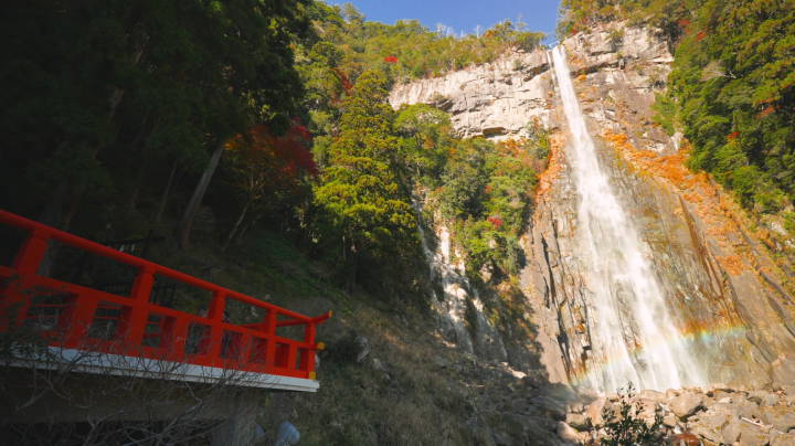 熊野那智大社とともに神仏習合の霊場として栄えた那智山青岸渡寺は、西国三十三所観音霊場の第一番札所です。朱塗りの三重塔と那智の滝を望むフォトスポットもぜひ立ち寄りを。行者堂では、月に一度、月例護摩供として熊野修験者による 特別護摩供を行っています。