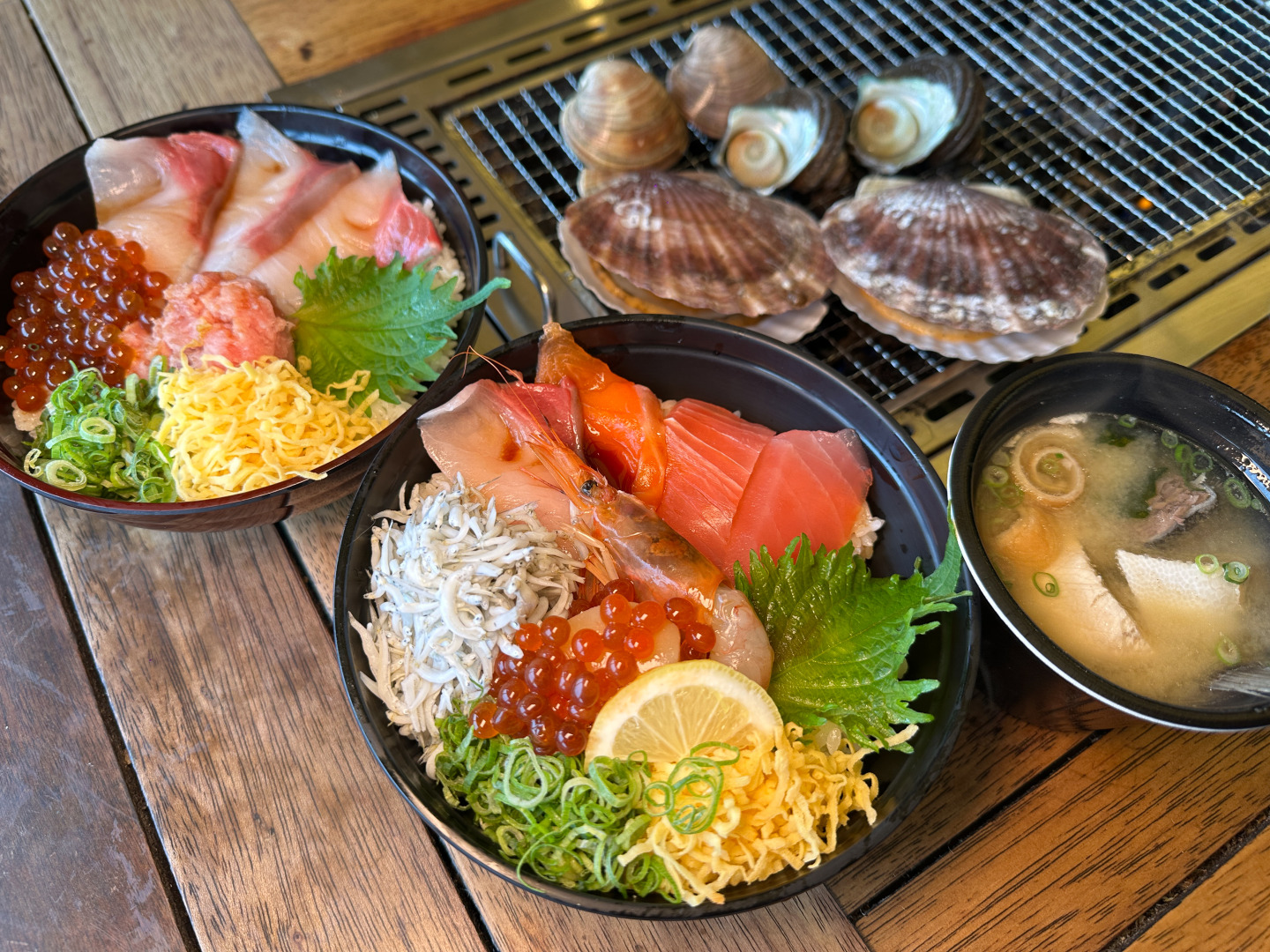 和歌山マリーナシティにある「黒潮市場」は、マグロを中心に海の幸を楽しめる“まぐろアミューズメント市場”。毎日行われるマグロの解体ショーは迫力満点で、平日は2回、土日祝日は1日3回開催され、さばきたてのマグロを間近で味わえるのも魅力です。手ぶらで楽しめるバーベキューも人気で、新鮮な海産物や和歌山県産の食材を選ぶだけ。海を望むテラスで気軽に食事が楽しめます。せっかく訪れたなら、海鮮丼も味わっておきたいところ。