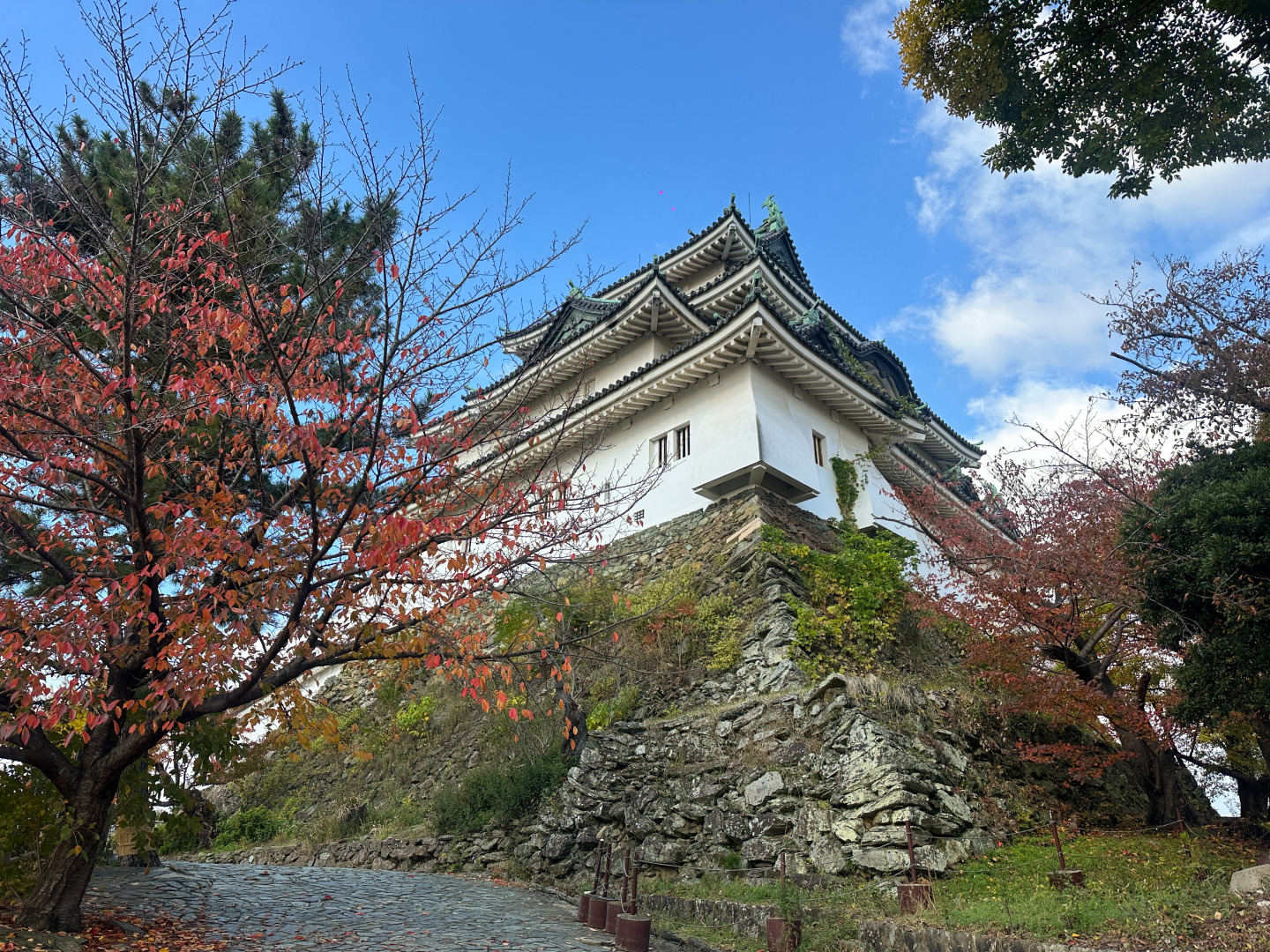 和歌山市の中心、虎伏山(とらふすやま)の山頂にそびえる「和歌山城」は、白亜の三層天守がひときわ目を引く名城です。紀州徳川家の居城として栄え、8代将軍・徳川吉宗や14代将軍・家茂を輩出した歴史を誇ります。現在の天守は1958年に再建されたもので、最上階からは市街地や周囲の山々、紀伊水道までを一望。城内公園には重要文化財の岡口門や土塀、多彩な石垣に加え、小さな動物園や手入れの行き届いた庭園もあり、秋には紅葉が彩りを添えます。歴史と自然を気軽に楽しめる、散策にもぴったりのスポットです。