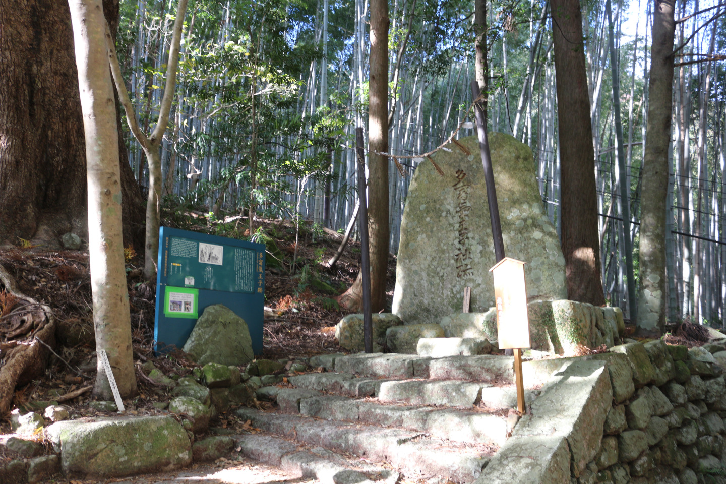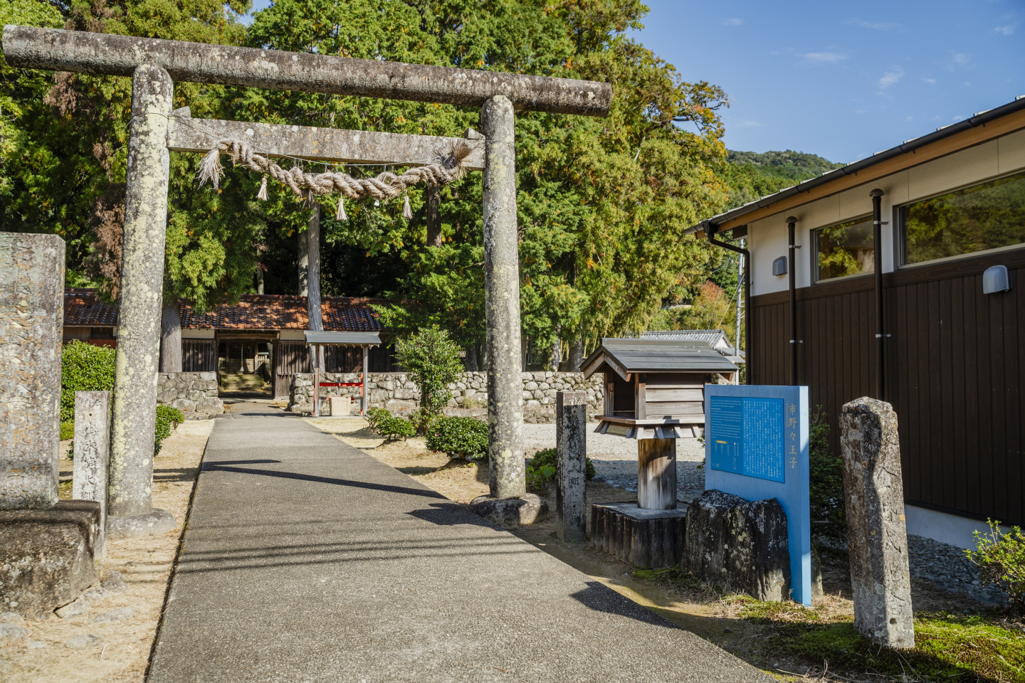 現在、市野々王子跡は市野々王子神社とされており、杉木立に囲まれて社殿が鎮座しています。熊野九十九王子の最後から2番目の王子で、那智参詣者を相手にした「市」が立ったことから、この名がついたといわれています。