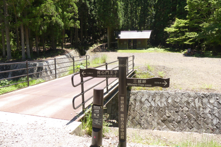湯の峰温泉方面から歩いてきた場合は、ここで本来の熊野詣のメインルートに合流します。右折して歩みを進めると船玉神社、猪鼻王子を経て、ほどなくして熊野本宮大社の神域の入口とされていた発心門王子に到着します。