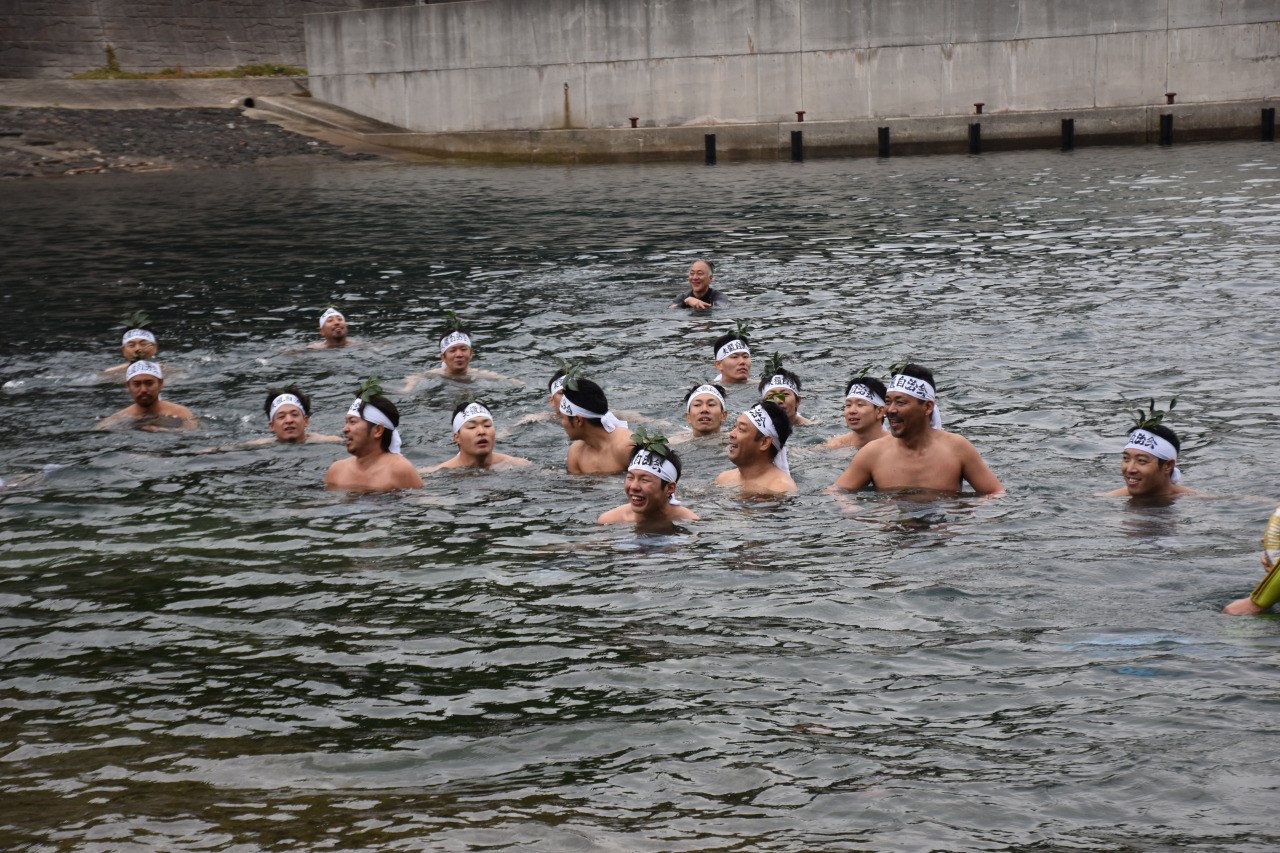 地区の青年たちが、朝早くから海中に入って心身を清め、揃って南龍神社に参詣する(通称:裸参り)という伝統的な催しが実施されます。