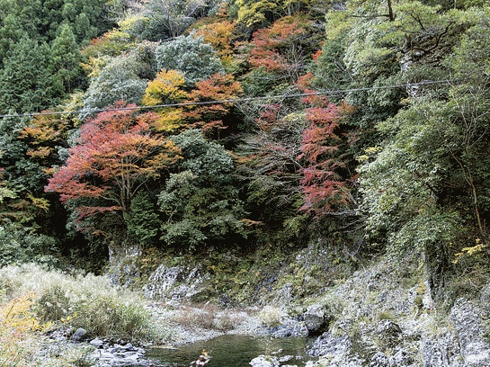美しい渓谷美を包み込むような紅葉
