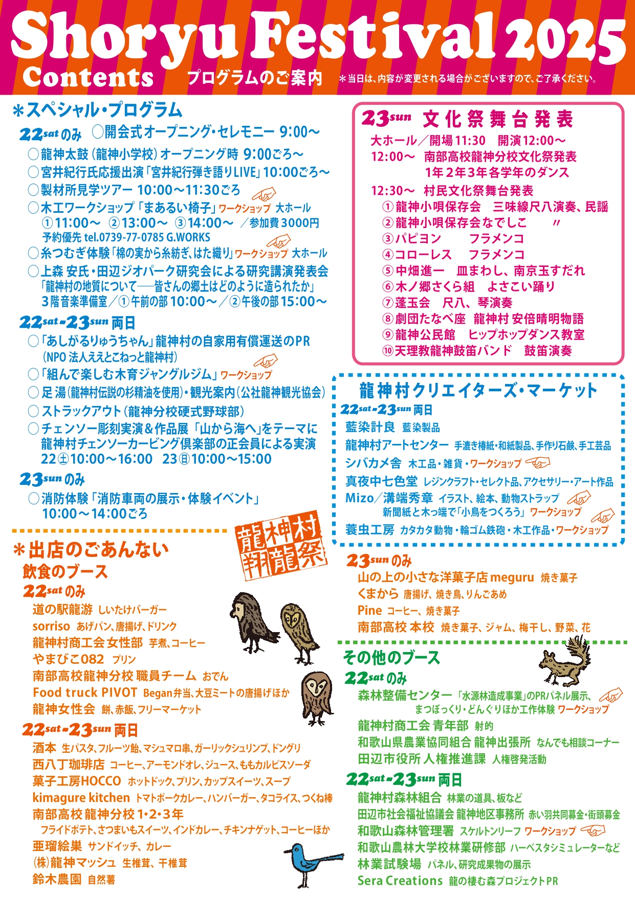 - 龍神林業まつり/0739-78-0830(龍神行政局産業建設課) 村民文化祭/0739-78-0301(村民文化祭実行委員会)