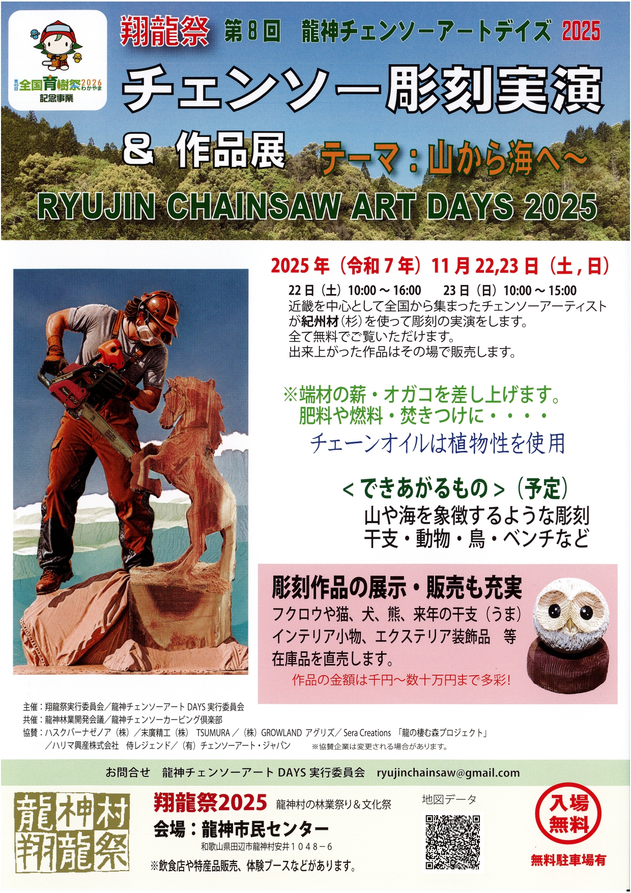 - 第54回龍神林業まつり 22日(土)9:00(開会式)~16:00/23日(日)9:00~15:00