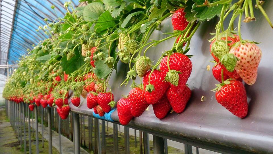 「イチゴランドカプリ」では、『紅ほっぺ』や『おいCベリー』に加え、濃厚な味わいが魅力の『よつぼし』が45分間食べ放題(要予約)。トッピングの持ち込みも可。ハウス内での高設栽培(地面ではなく、高い位置で育てる方法)により雨の日でも安心なうえ、ベビーカーや車椅子の人も一緒にいちご狩りを楽しめます。