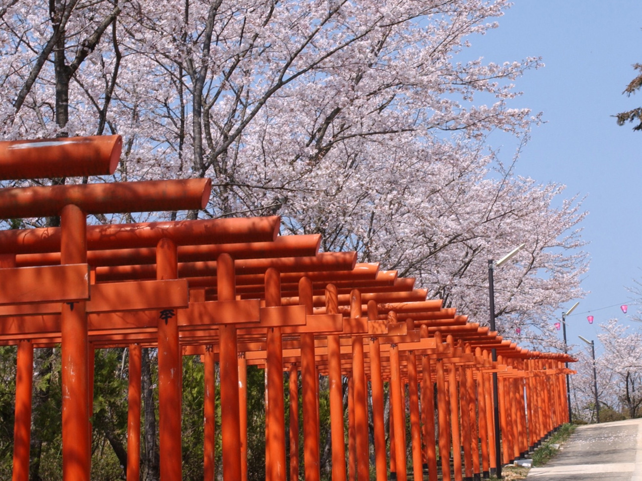 京奈和自動車道を走行中、ふと視界に飛び込む朱色の鳥居。橋本市にある「丸高稲荷神社」は、春になると約150本の桜が咲き乱れ、87基の幾重にも重なる朱色の鳥居との対比はとても印象的。高台の一番上まで登ると、雄大なパノラマが眺められます。