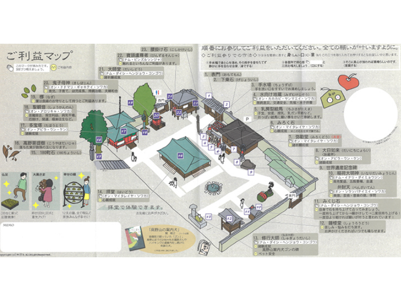 寺務所で御利益マップを受け取り、順番にお参りをして御利益をいただいてください。