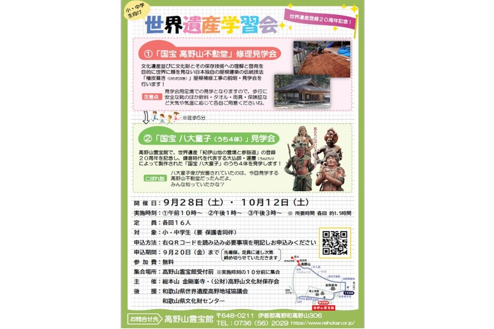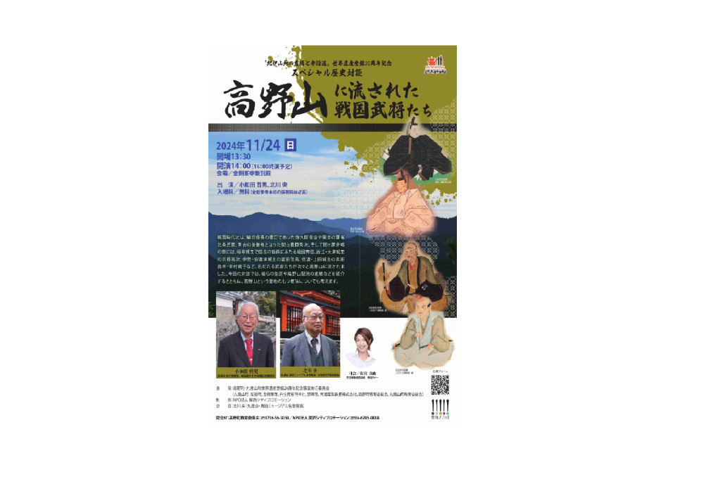問合せ:0736-54-2019(高野町・九度山町世界遺産登録20周年事業実行委員会)
