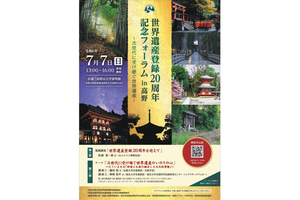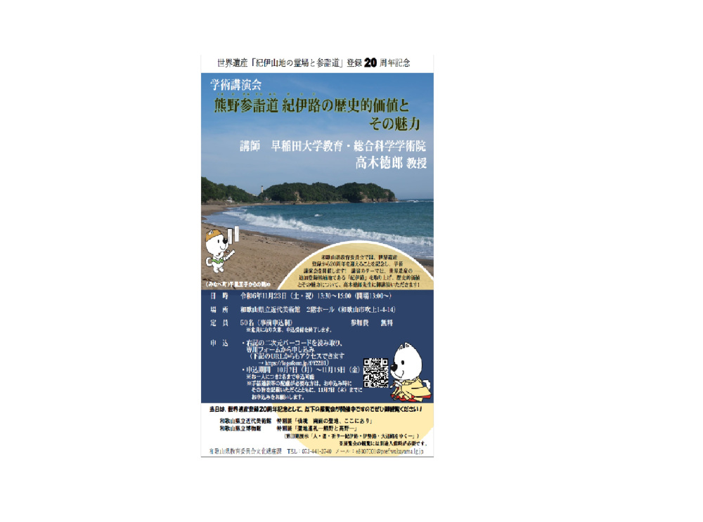 和歌山県教育委員会では、世界遺産登録から20周年を迎えることを記念し、学術講演会を開催します!