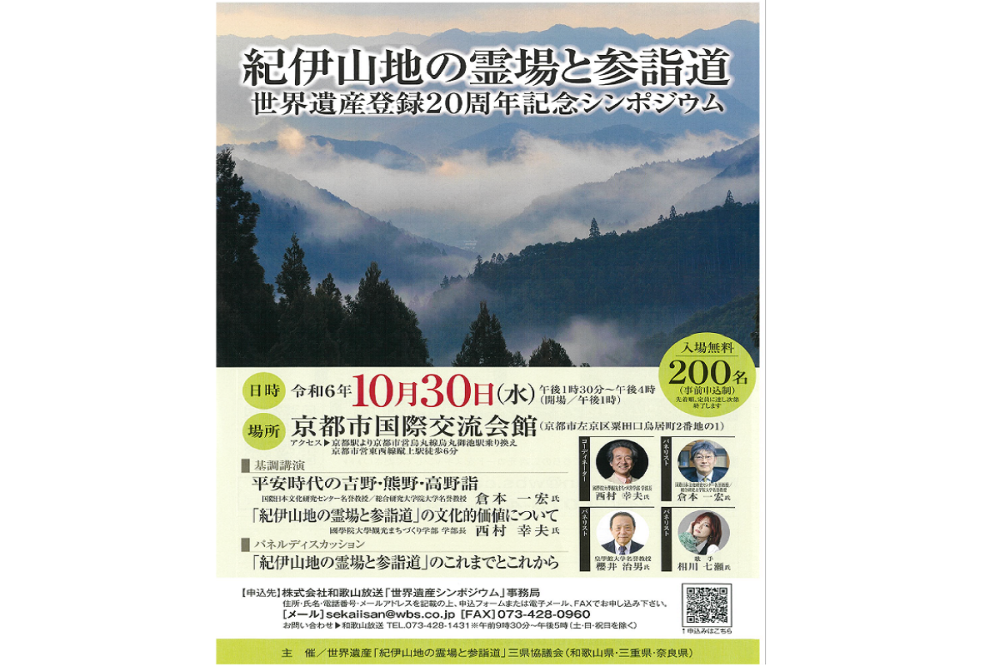 世界遺産登録20周年記念シンポジウム 世界遺産「紀伊山地の霊場と参詣道」 その歴史・信仰・魅力、そして未来を語る