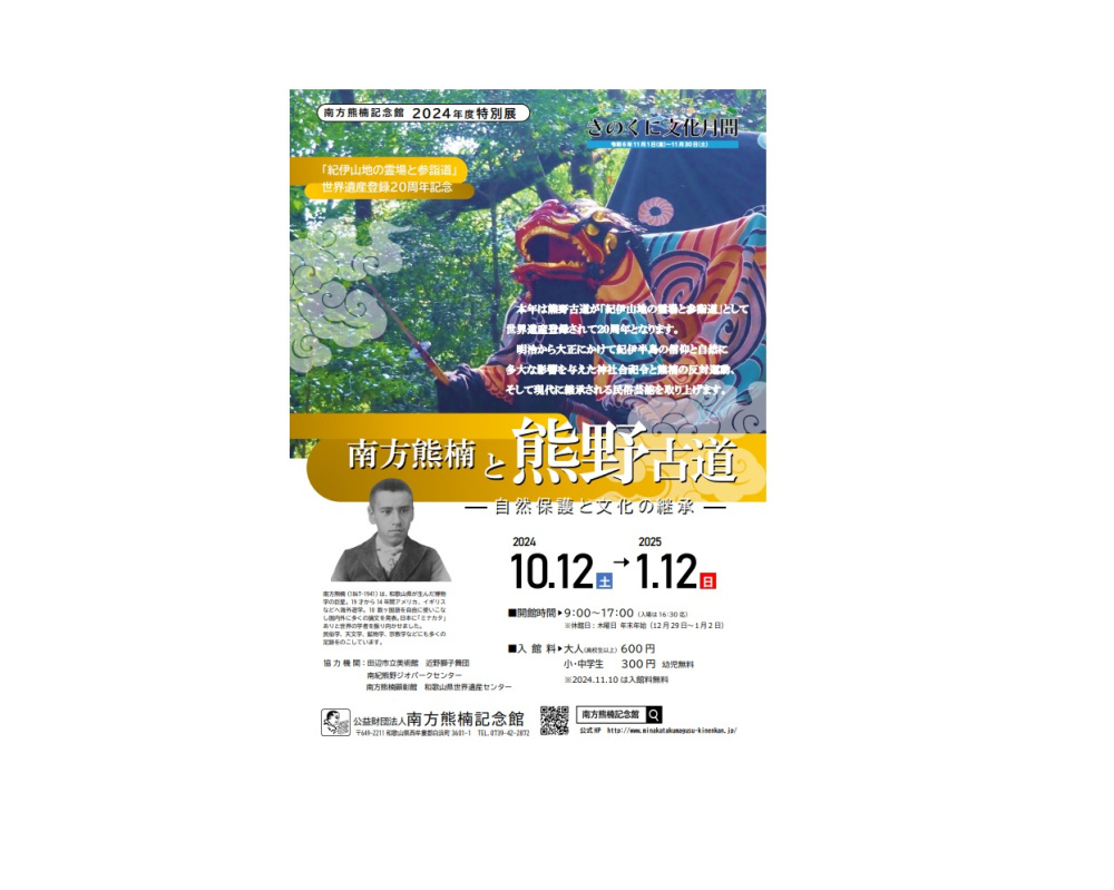 問合せ:0739-42-2872(南方熊楠記念館)