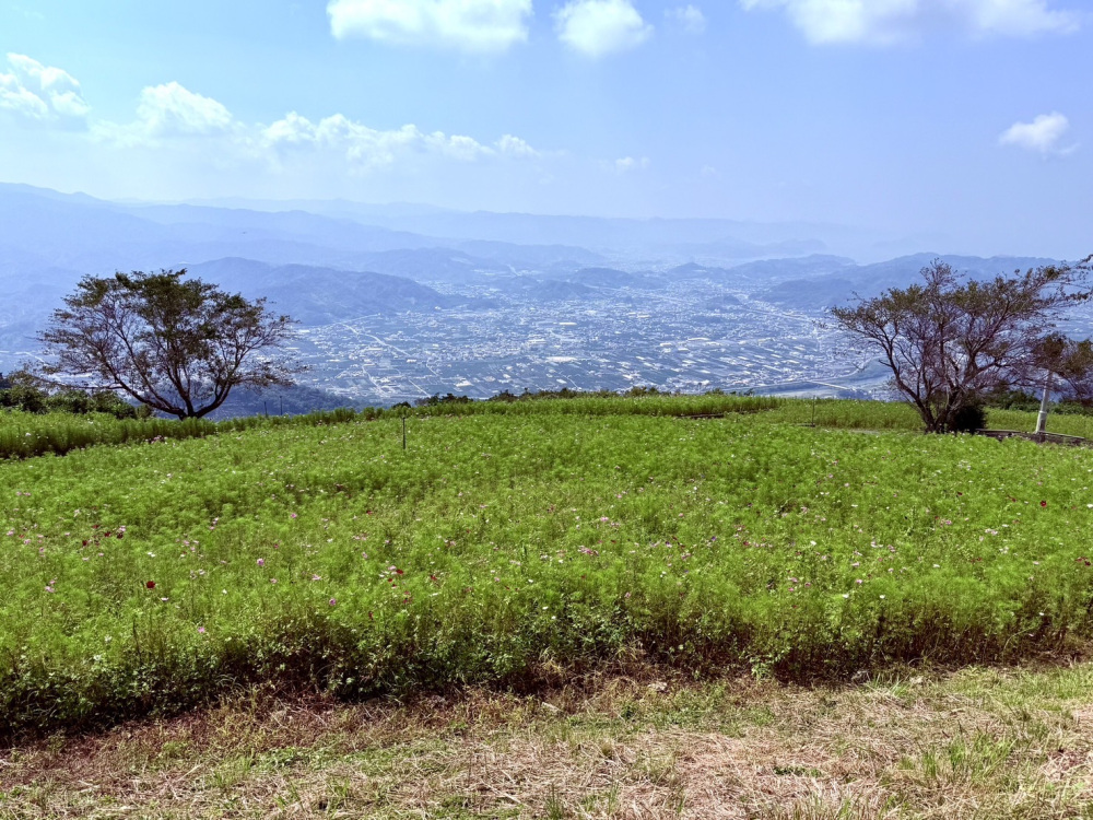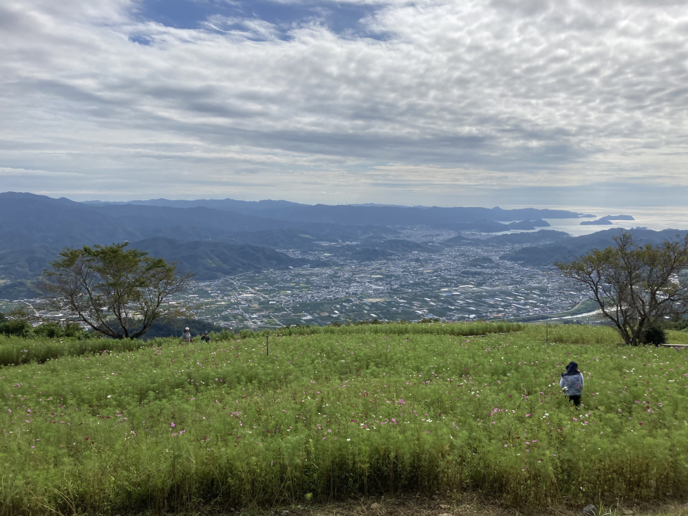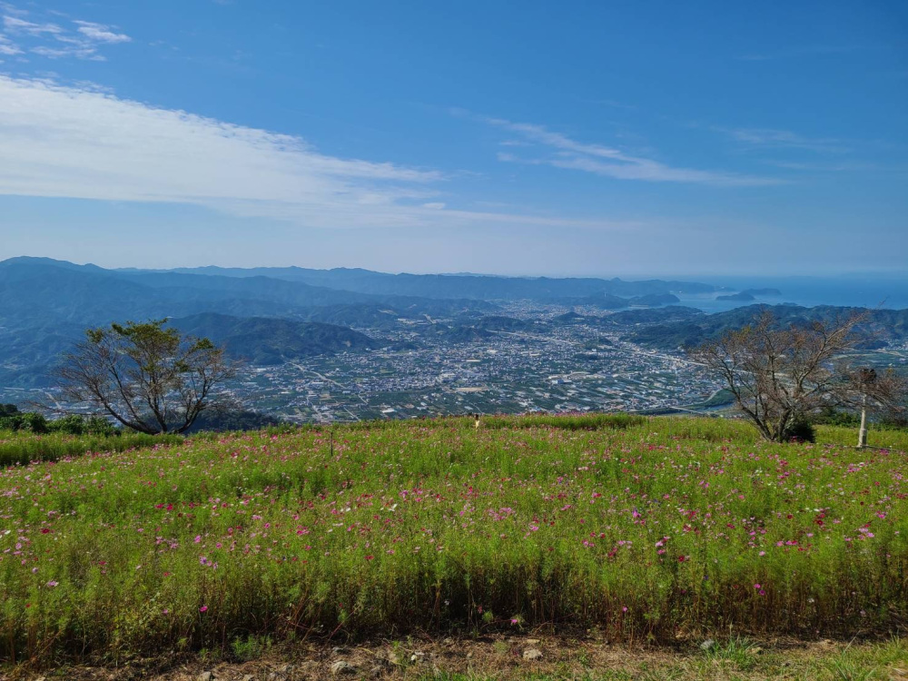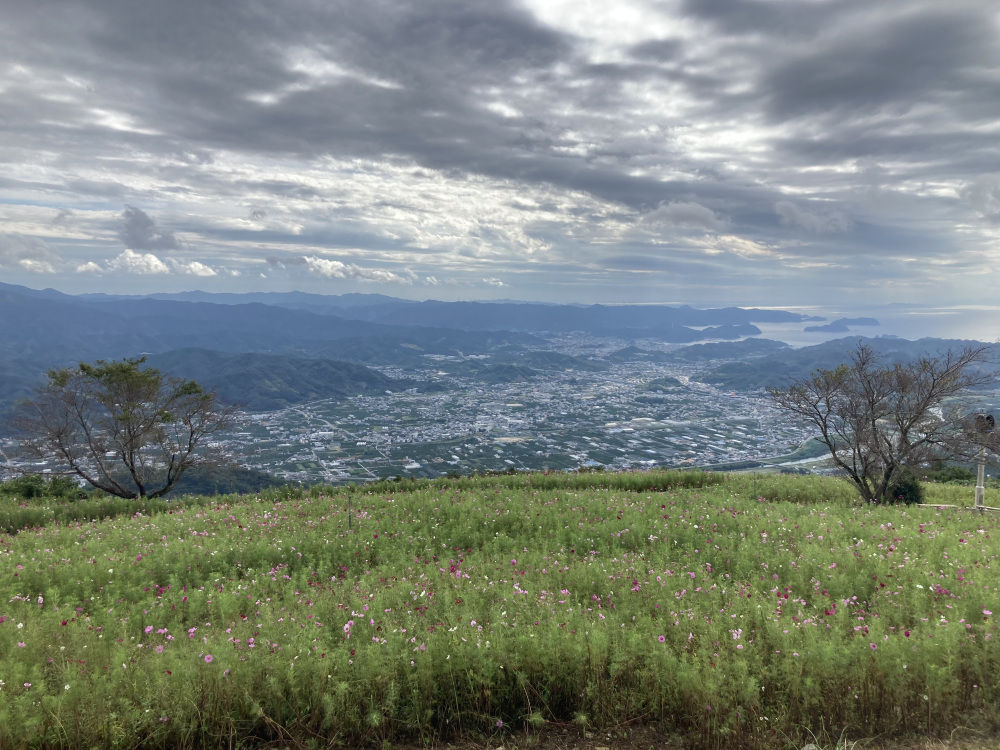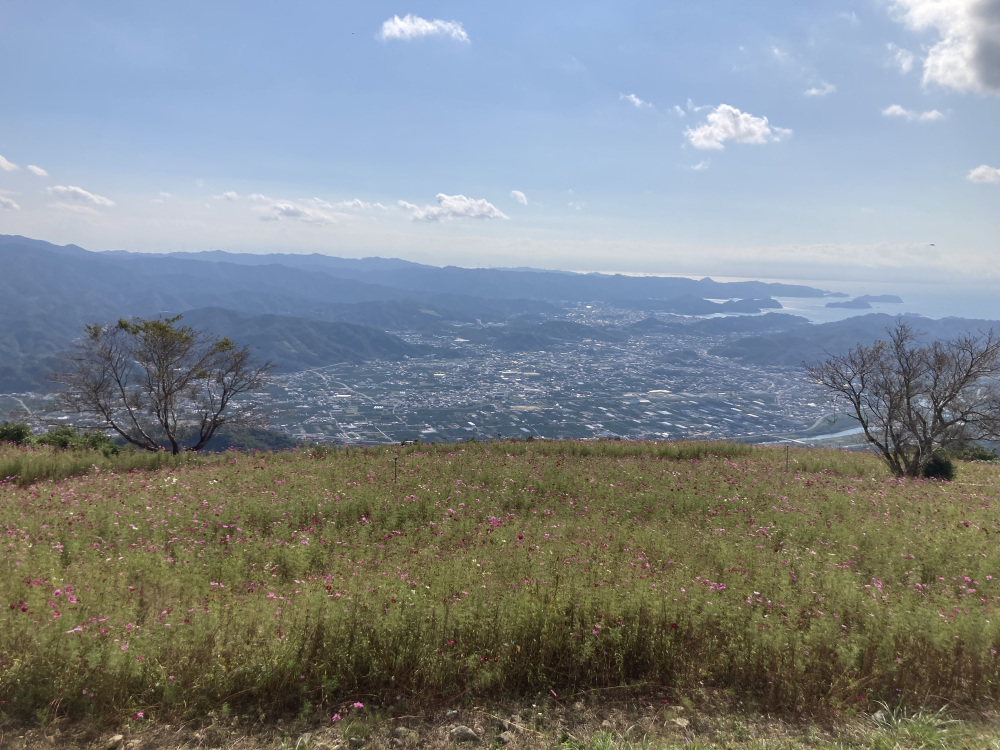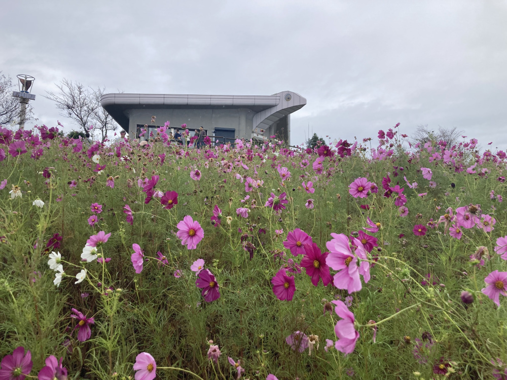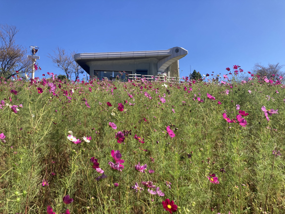 コスモスの花はまだそれほど咲いていませんが、天気も良い日は淡路島や四国まで見渡すことができる絶景を楽しんでいただけます。