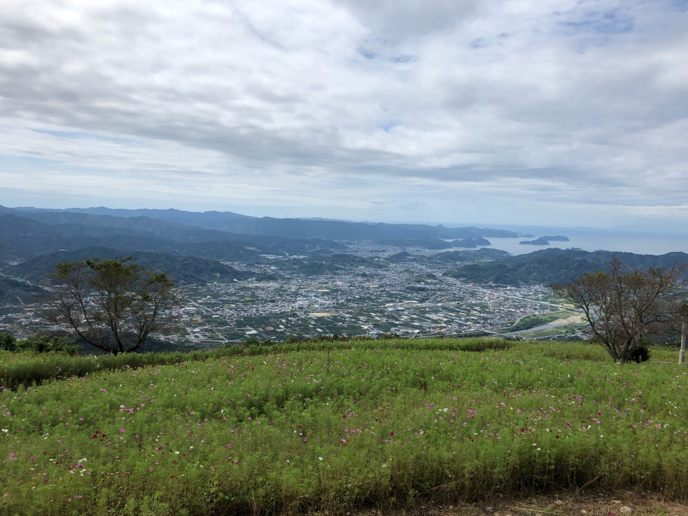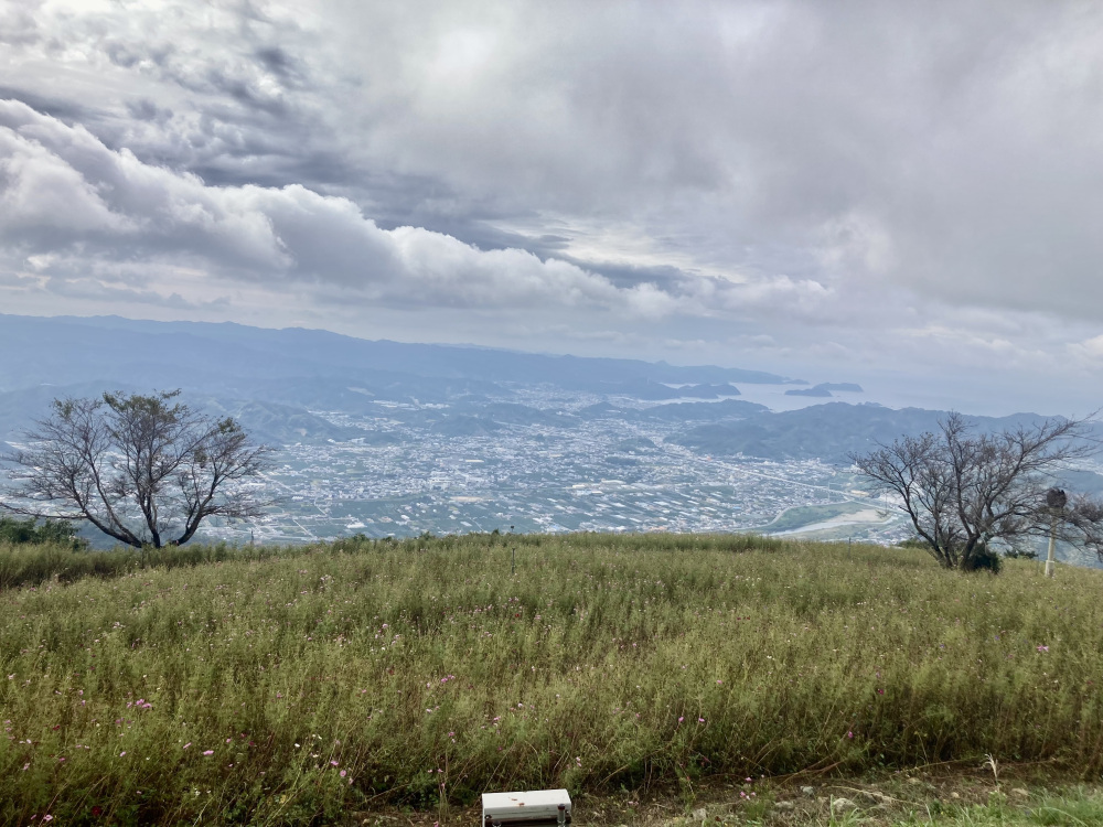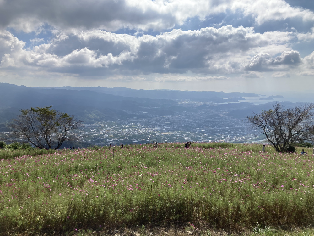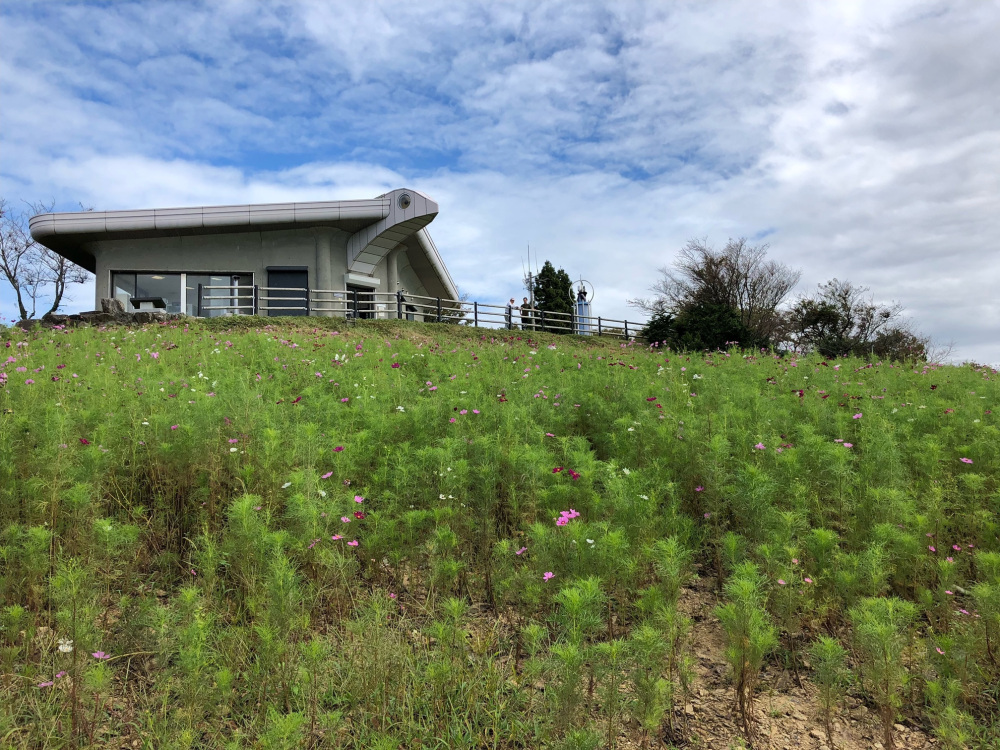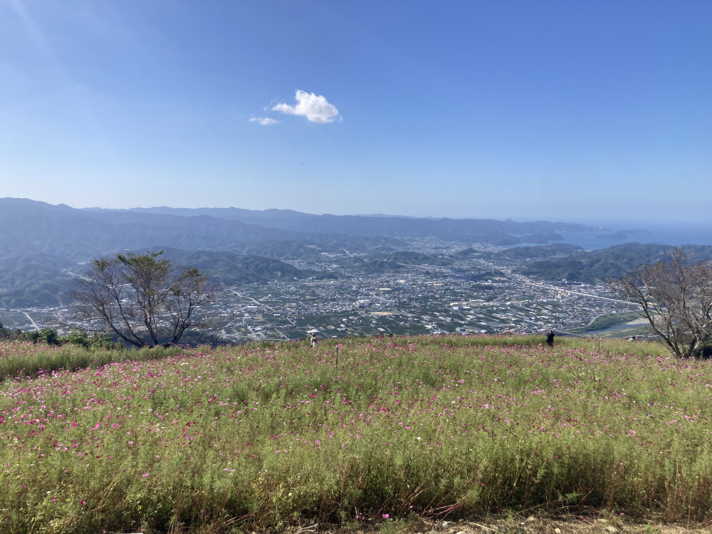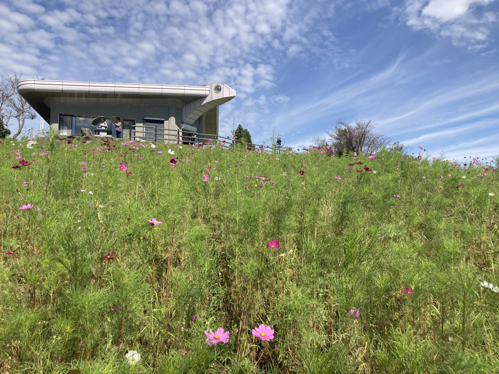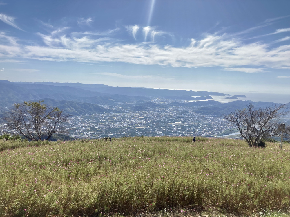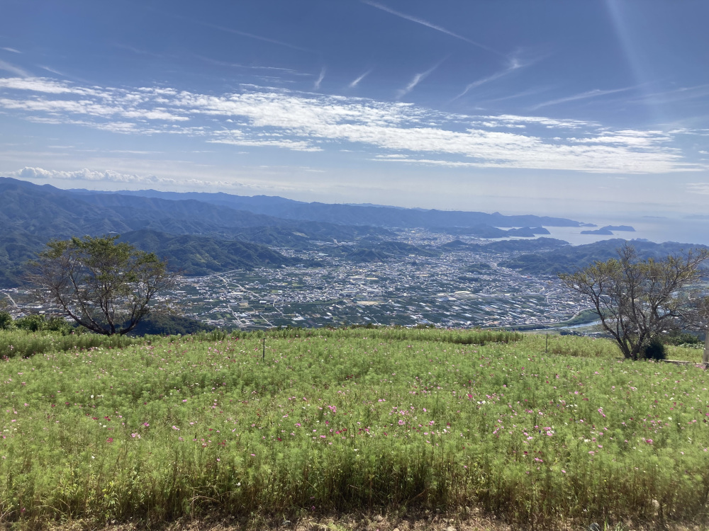コスモスの花はまだそれほど咲いていませんが、天気も良い日は淡路島や四国まで見渡すことができる絶景を楽しんでいただけます。