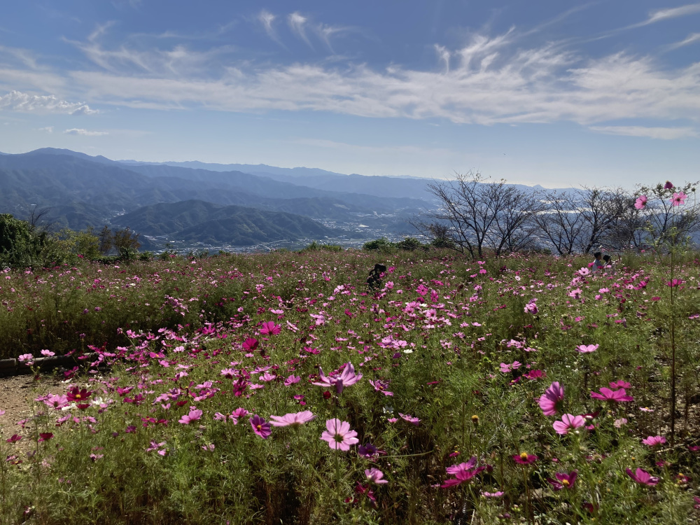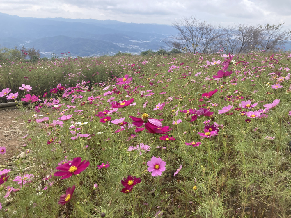 標高586メートルの鷲ヶ峰頂上にあるコスモス畑。