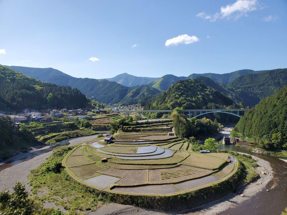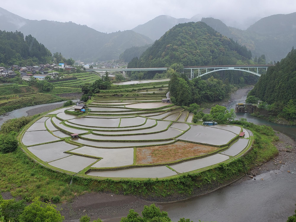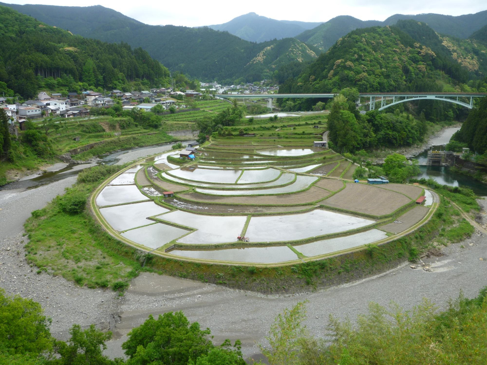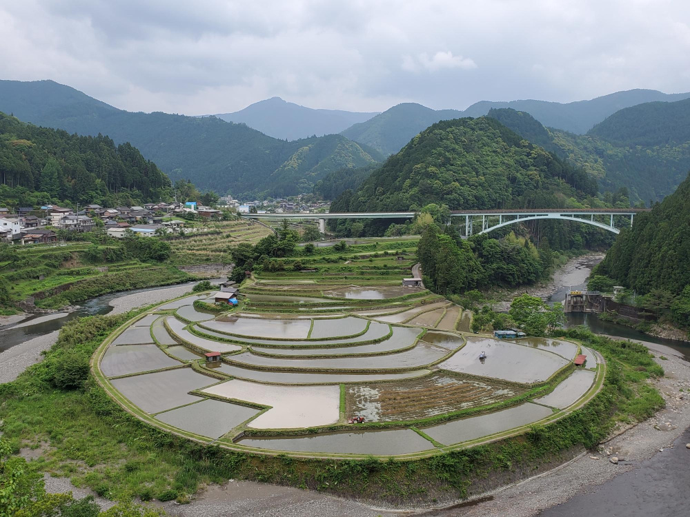 6月上旬にはすべての田に水がはられそうです。緊急事態宣言が解除されましたが、県をまたぐ移動の自粛要請が出されておりますので、有田川町のホームページやSNSであらぎ島の風景をご覧ください。