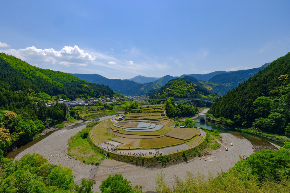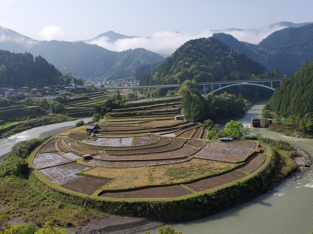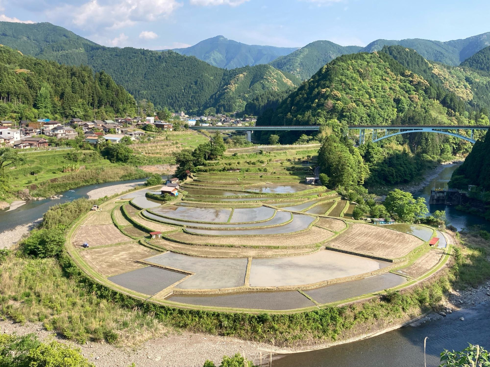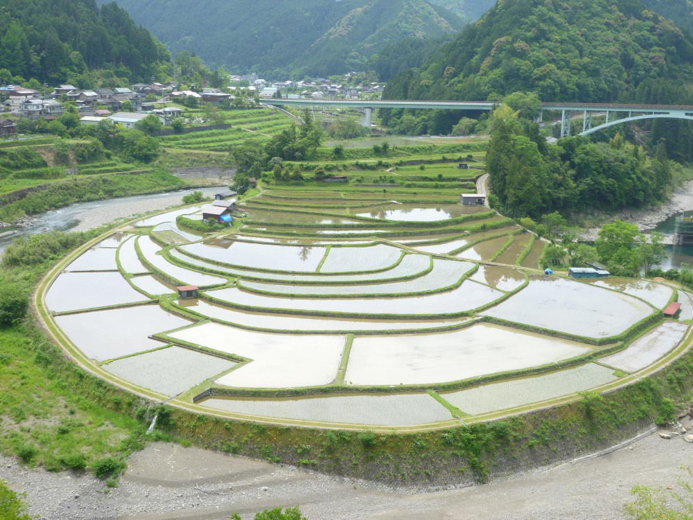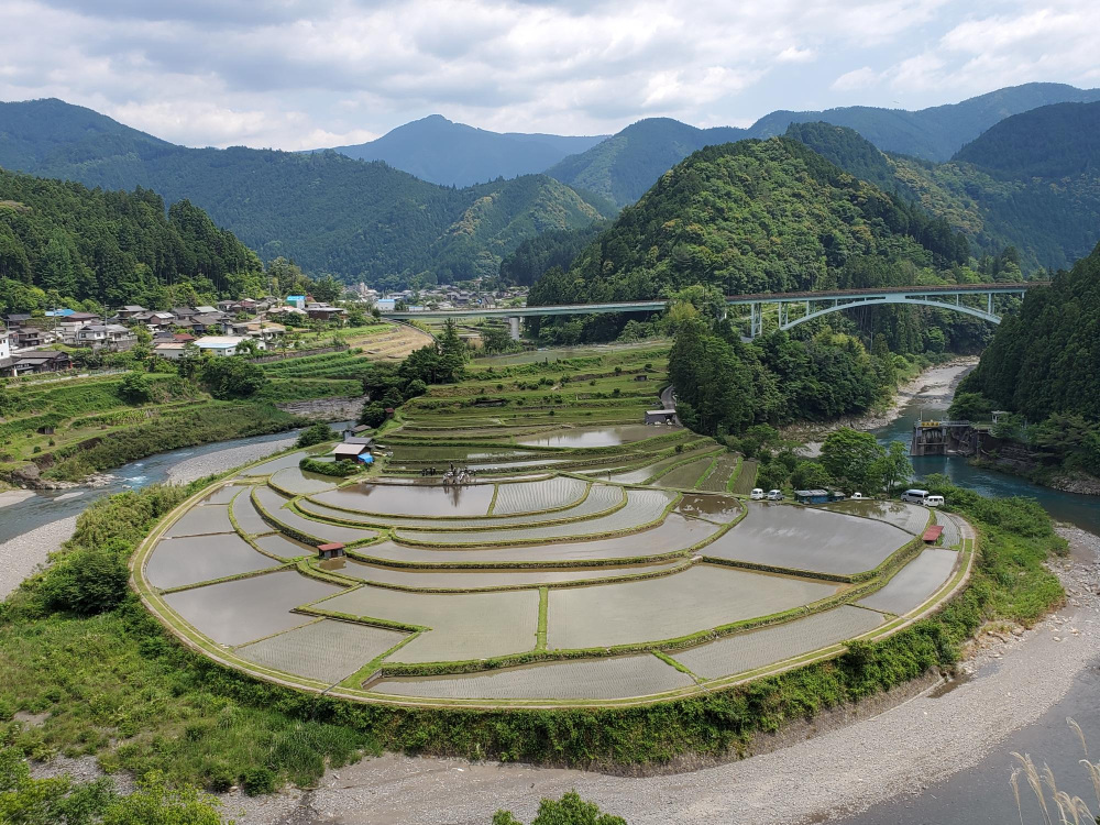 6月上旬にはすべての田に水がはられそうです。緊急事態宣言が解除されましたが、県をまたぐ移動の自粛要請が出されておりますので、有田川町のホームページやSNSであらぎ島の風景をご覧ください。