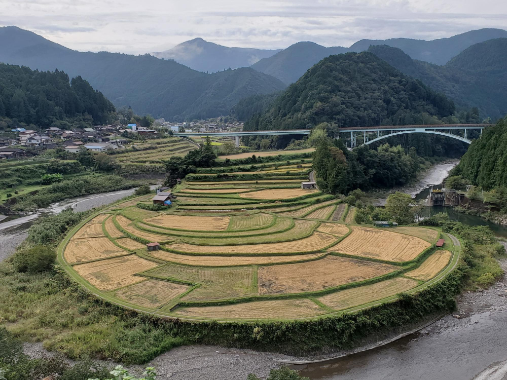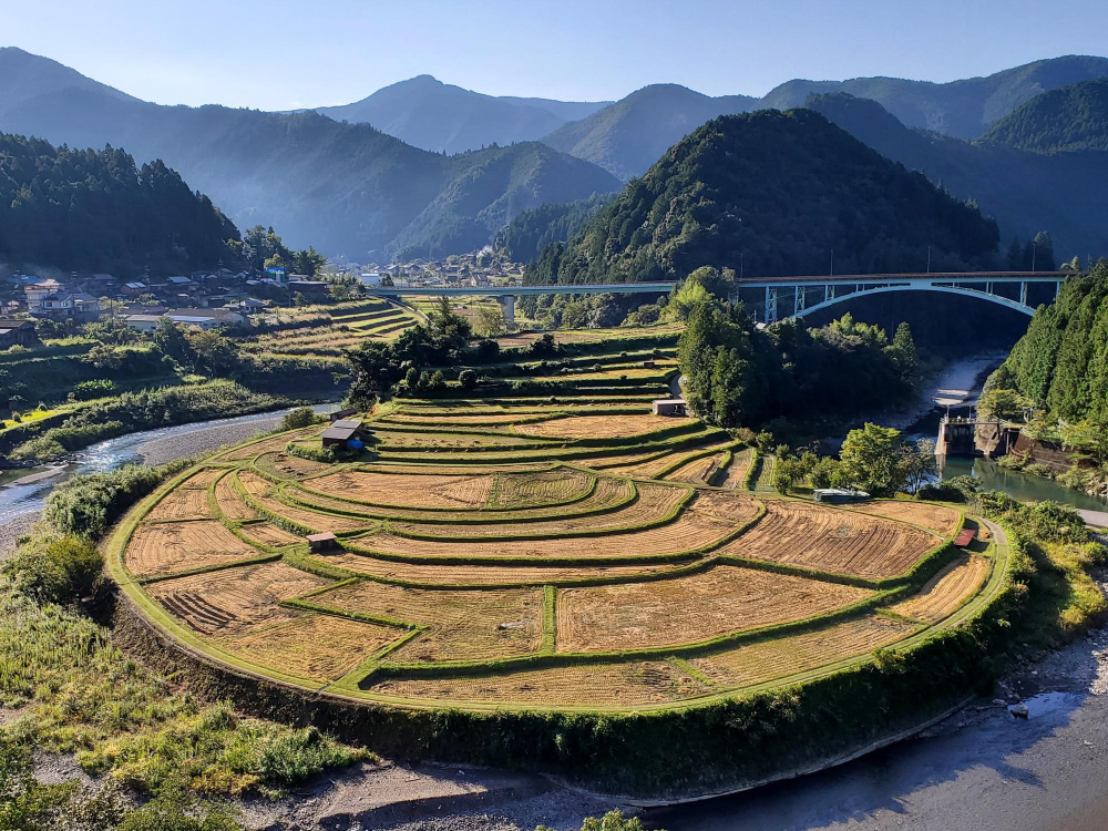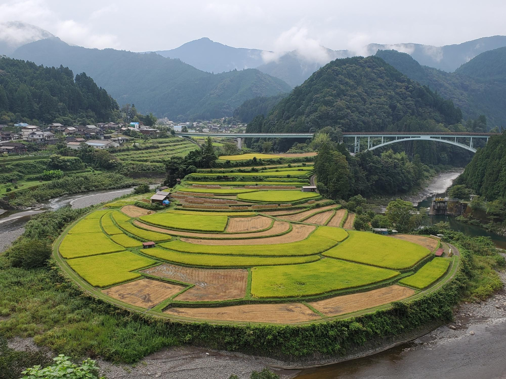 稲刈りはほぼ完了したようです。一面の緑が名残惜しいものの、刈り終わったこの風景もまた、農業の営みを感じさせる棚田ならではのものです。