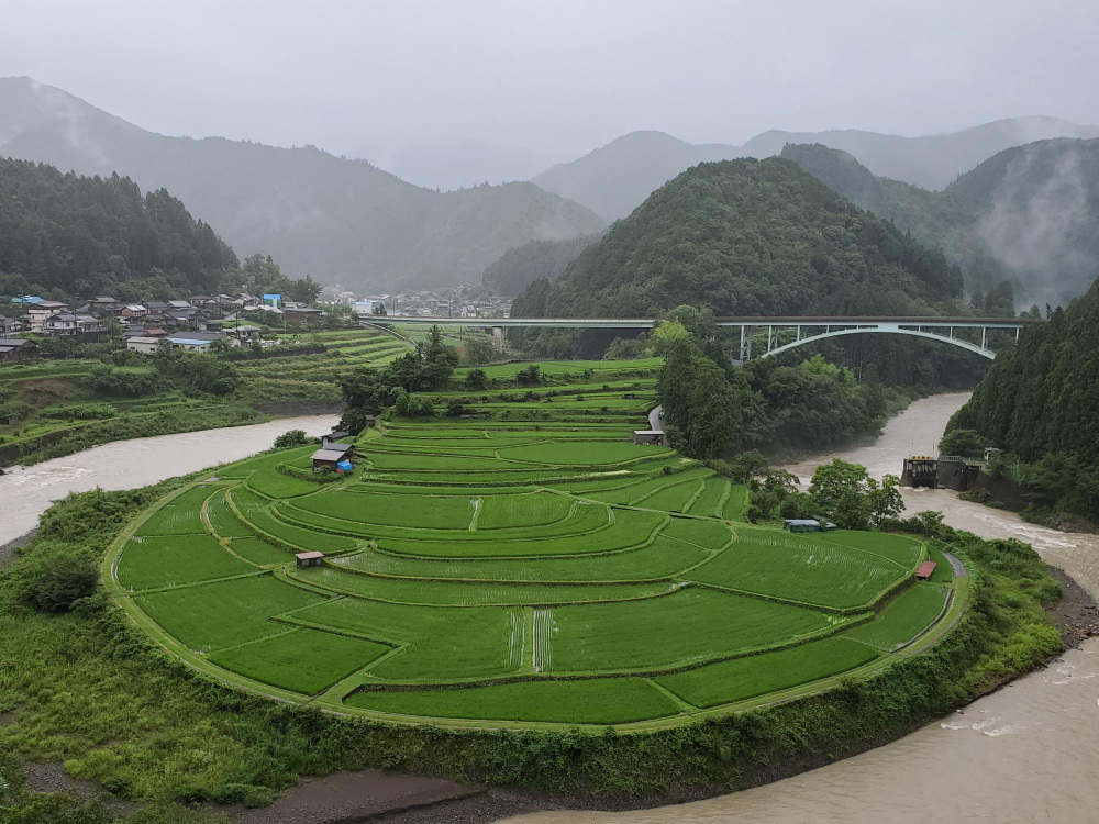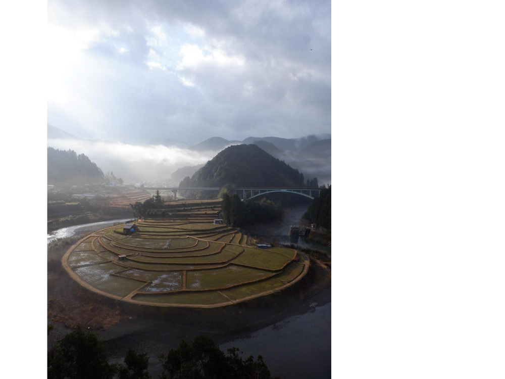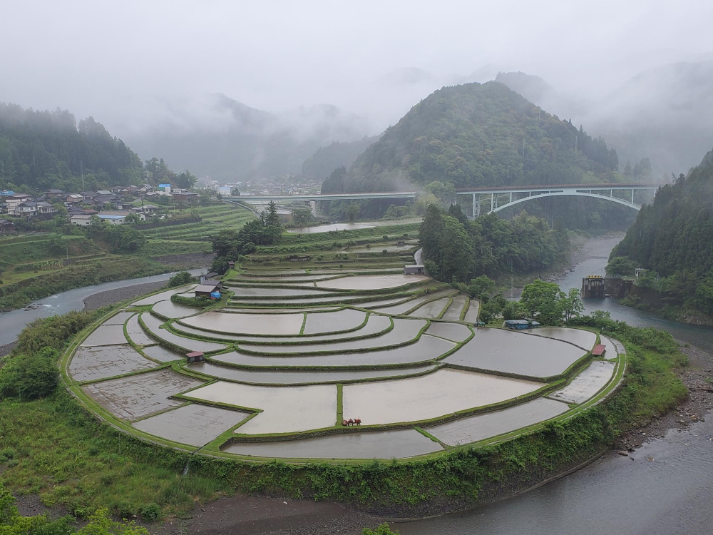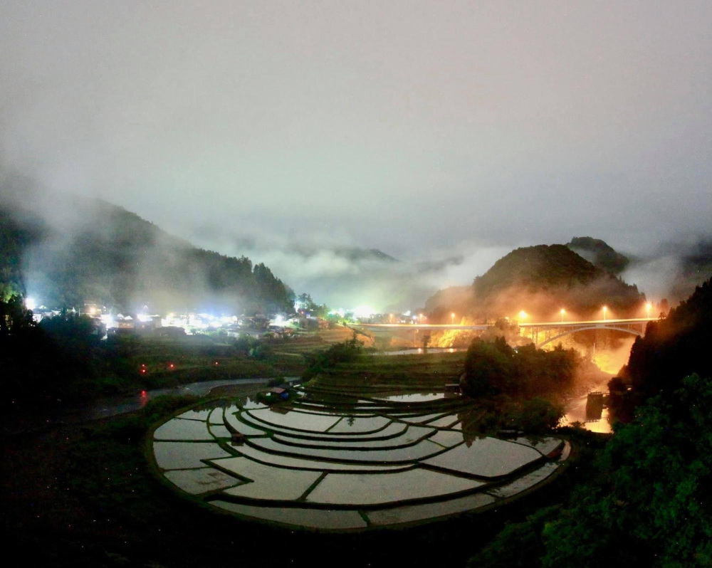 すべての田に水がはられました。晴れの日には水鏡のような美しい風景が見られそうです。夜は霧がかかって幻想的な風景です。