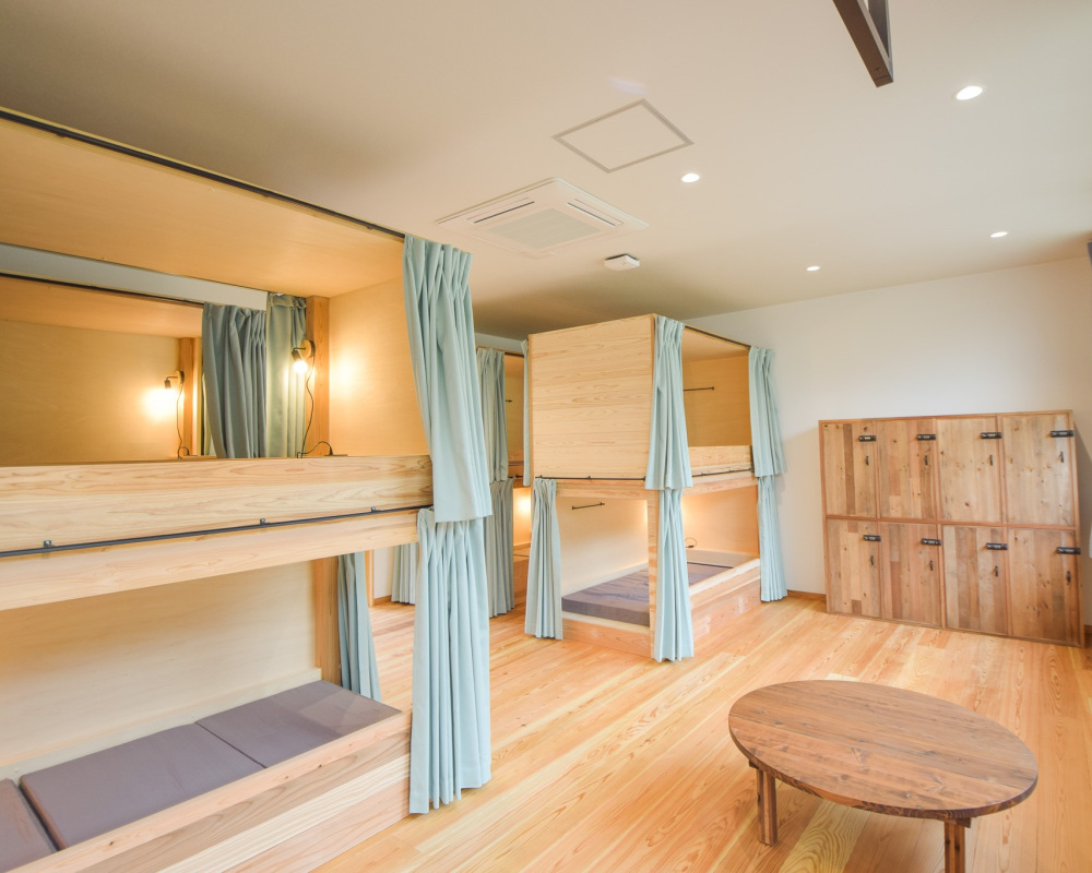 快適なカプセルホテルのようなドミトリーと、明るくコミュニケーションが取りやすい空間でありながら、カーテン付きのベッドでプライベートが確保された個室があります。個室は専用キッチン・シャワー・トイレが完備。お部屋でパーティもできます。ドミトリーはトイレ・シャワー共同です。