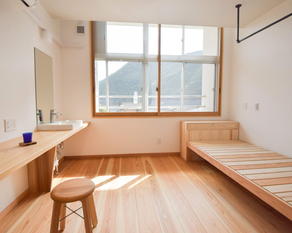 閉園になった保育所をリノベーションした「THE LIVING ROOM」にあるゲストハウスtadono the bedroom。同施設内には、クラフトビールのブリュワリー、カフェ&ビアバー、パン屋さん、まつ毛サロンなどがあります。有田川町でのレジャーや、隣接のバーでお酒を飲んだ後、気軽に泊まれる場所があれば…と、作られました。