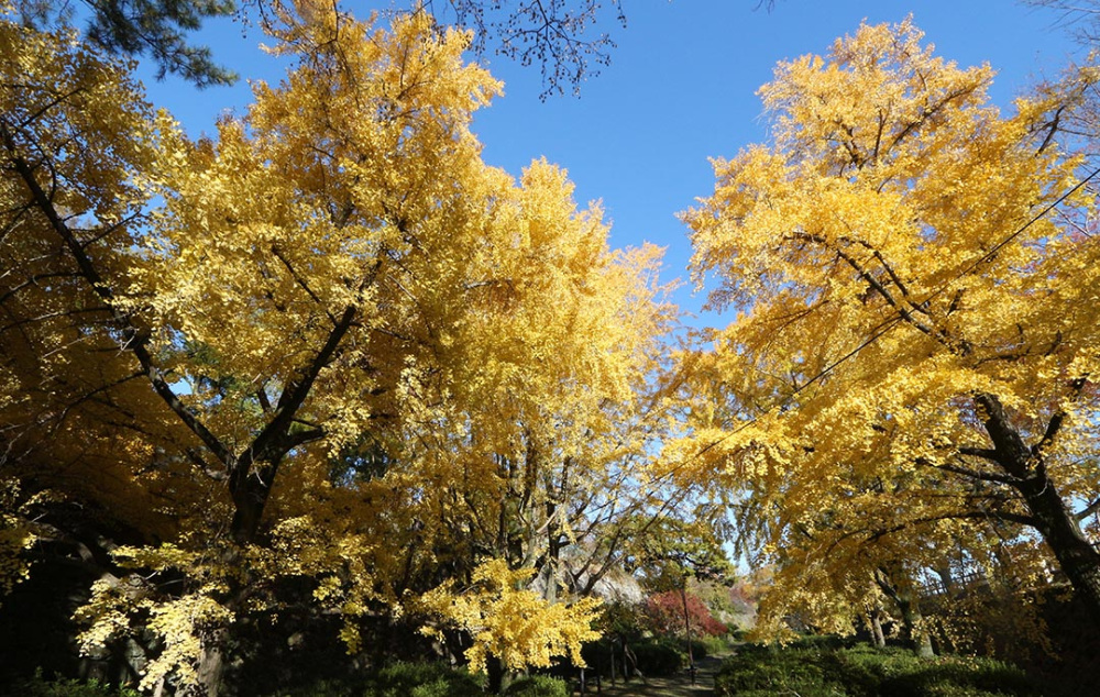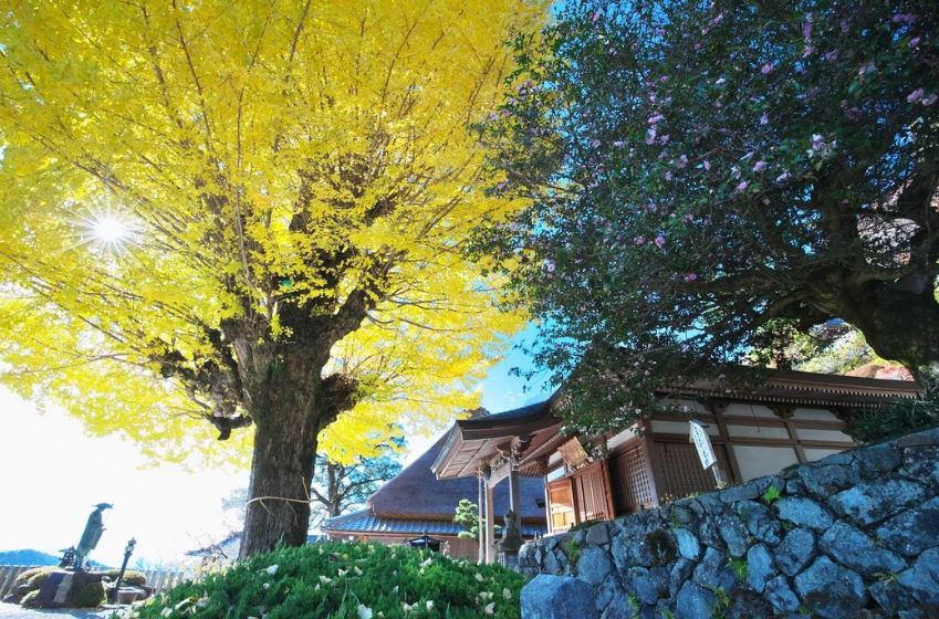 県指定天然記念物である樹齢500~600年のサザンカの古木や、11月中旬に見頃を迎える大銀杏の黄葉は必見です。