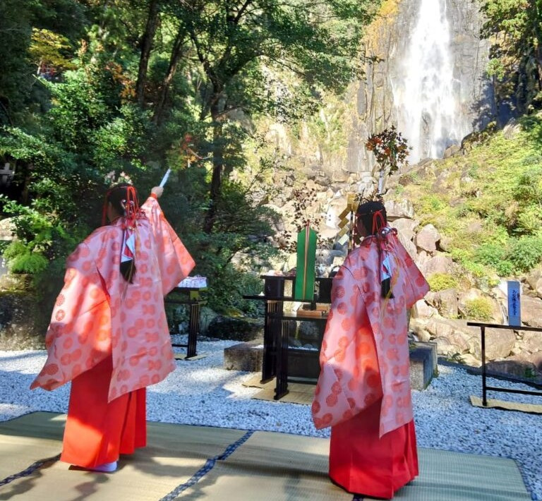 境内を囲むモミジやイチョウが赤や黄金に染まり、那智山全体が色鮮やかな紅葉の景観に包まれます。11月14日には「紅葉祭」を開催。