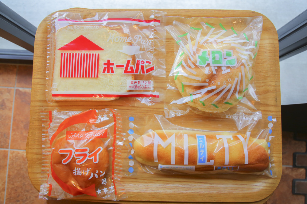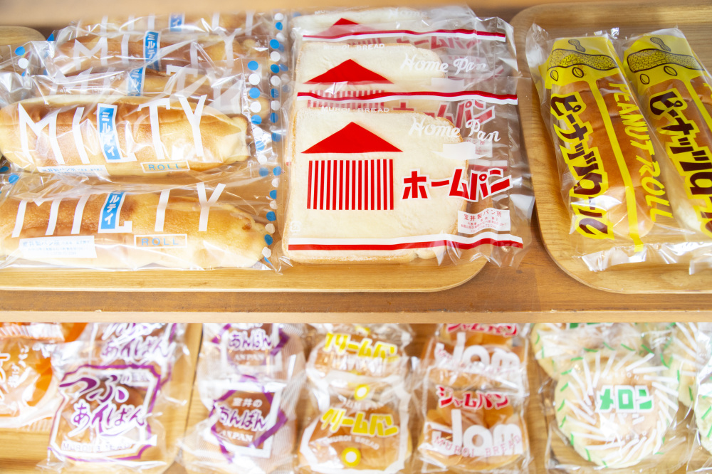 店主の室井勝之さんは3代目。勝之さんのおじいさんが終戦直後にパン屋を始めたそうです。コッペパンにマーガリンを塗った「ミルティ」。ホイップクリーム入りの「ヤングパン」。マーガリンを塗った食パンにグラニュー糖をかけた「ホームパン」。レトロなデザインのパン袋に記された、パンの名前も個性的。