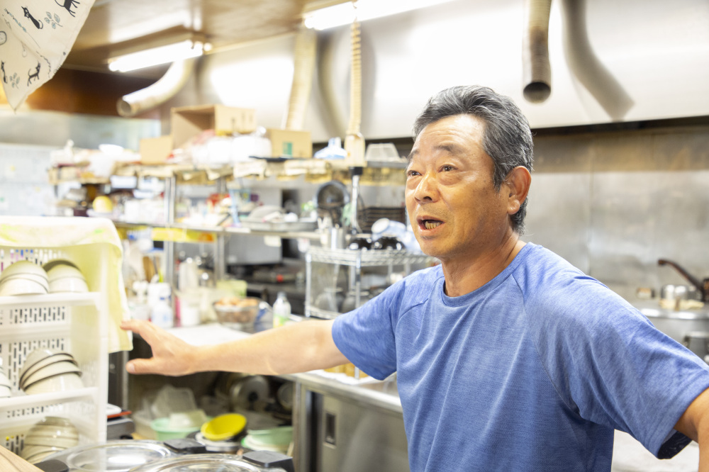 「高速道路のない時代は、車で白浜に行くのにうちの前を通るので夜でも人は多かった。今はしっかり休んでますよ。時代ですね。夜なんか車走ってないから」とは、去年まで大学でホッケーの監督をしていたという2代目の大将。