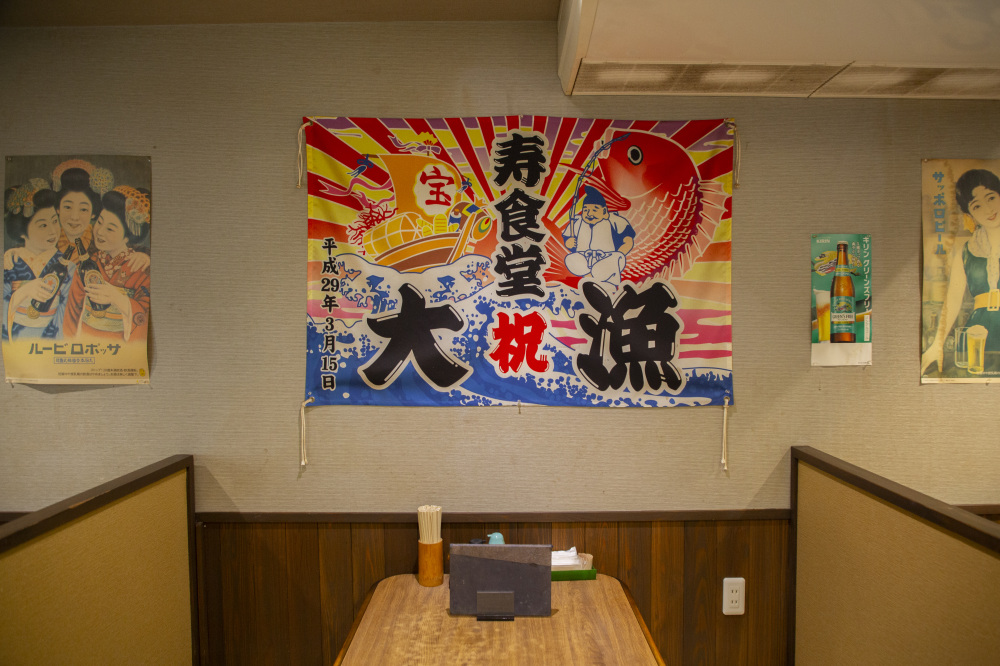 国道42号線沿いに位置する「ことぶき食堂」の創業は60年近く前。もともとはトラックの運転手さん目当てに夜中だけの営業からスタートしたそうです。今でこそ深夜営業は珍しくないけれど、当時は地域の中で夜中に空いている店は他になく、重宝されるように。次第に釣り客も増え、昼間も店を開けて24時間年中無休の営業が続きました。