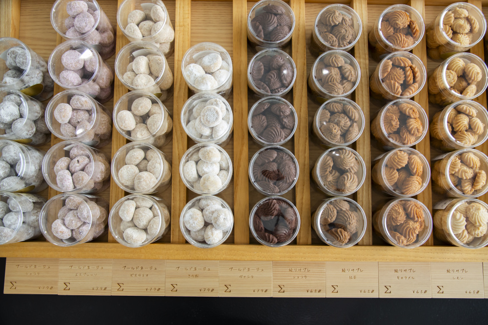 大阪、神戸、東京での修行を経て、地元で自らの店を開いたパティシエの上野山貴之さん。フルーツ農家さんとの付き合いも深く、冬はいちご、夏は桃やいちじく、秋はぶどう、年間通して梅やレモンなど、お菓子の素材にふんだんにフルーツを使用しています。見目麗しいだけでなく、ひとつひとつ丁寧に作り上げる味わいそのもののファンが多く、遠方からわざわざ足を運ぶ人が後を絶ちません。2019(令和1)年のオープンから、すっかり地元でも愛される存在に。90歳を超えるご近所の常連さんも日々通ってくるのだそう。