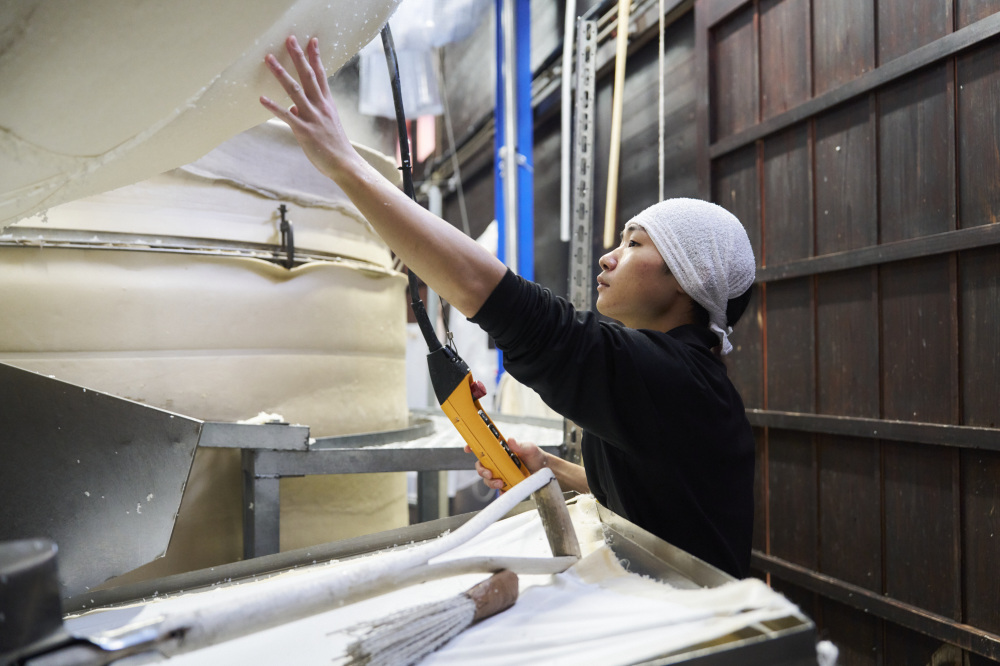 創業は1966年。海南市黒江のまちで、漆器職人を顧客に酒造りを始めた「名手酒造店」。蔵の井戸からくみ上げた、やや軟水の仕込み水は発酵力が強く、幅とうま味のある酒質が自慢。 代表銘柄「黒牛」は長く飲んでも飲み飽きず、「むしろ旨みが感じられます」と、常務取締役・名手佐起枝さん。やわらかな香りと存在感のある米の旨みが特徴で、ぬる燗から冷やまで、幅広く楽しめます。