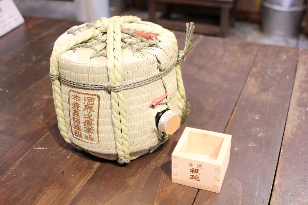 1885年創業、約140年にわたり酒造りを続ける「祝砲酒造」。「上撰 祝砲」は、日清戦争の勝利を祝って祝砲を上げたことにちなんで名付けられた、創業当時からの看板商品。縁起物として菰樽(こもだる)に仕立て、今も親しまれています。味わいは辛口で、雑味のないキリッとした口当たり。 写真は、ちょっとしたお祝いや贈り物にもぴったりな1.8L入りで、背面の注ぎ口に付属の栓を付けて使います。この他にも、72Lまで全7サイズを展開しています。