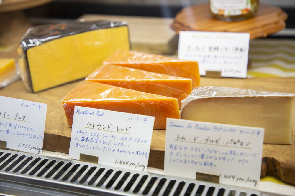 チーズの保管庫を設けた店内のショーケースには、オリジナルのチーズから、本場ヨーロッパのナチュラルチーズまで、25~30種類のチーズが並んでいます。特別詳しくなくても、「チーズが好き」「食べてみたい」「贈り物に選びたい」という気持ちがあれば大丈夫。チーズプロフェッショナルの資格を持つ喜臣さんや智子さんに、目的や用途に合った味を教えていただけます。