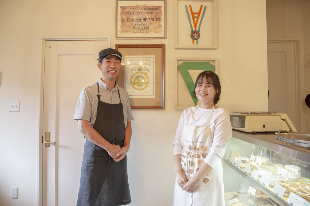 続けて喜臣さんからも、「妻と出会い、チーズプロフェッショナルの資格の取得を目指すために調べたら、当時の和歌山県はチーズ普及率が全国でワースト1だったんです。和歌山でチーズを普及させたいという思いを抱き、独学でチーズを学びました。イタリアに渡ってヨーロッパを代表するチーズ洗練師にも教えを請い、フランスチーズ艦評騎士の称号を授かりました。そうして長年勤めた会社を辞めて独立し、夫婦で店を開きました」と、ドラマのような夫婦の物語をお聞きしました。