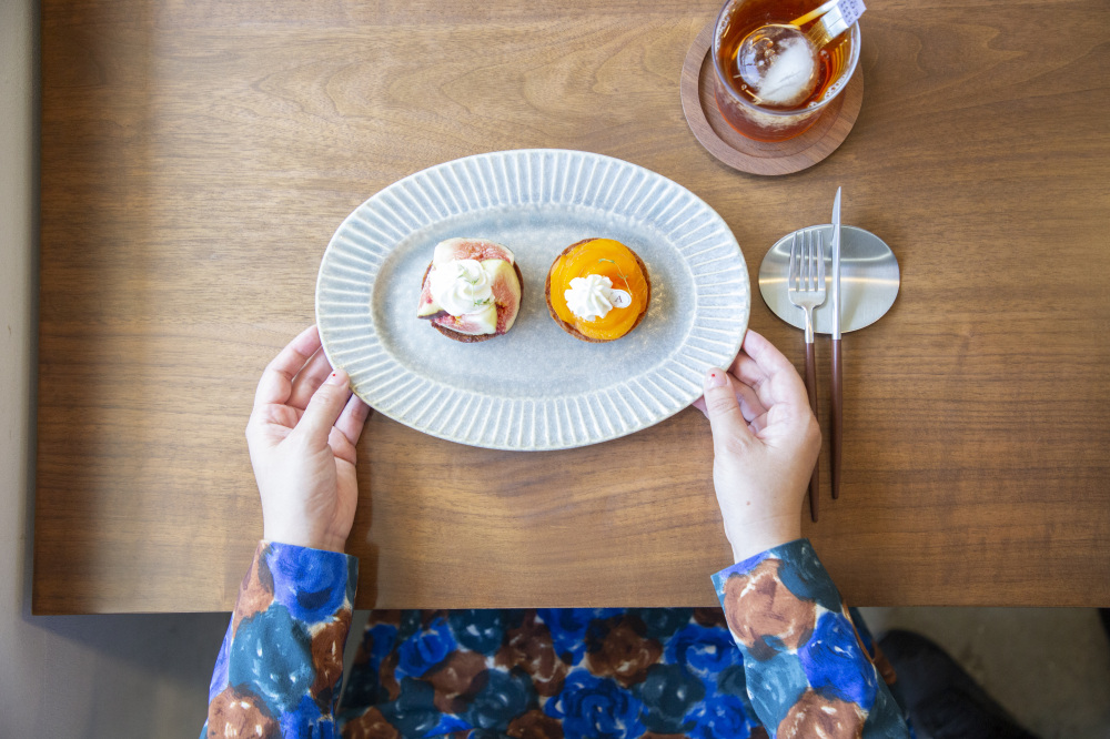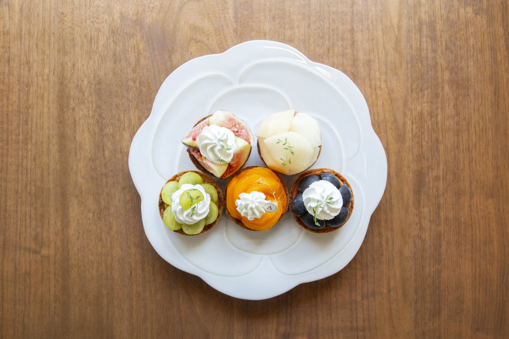 秋は、柿、シャインマスカット、いちじく、なし。冬はいちごやりんご。タルトの種類で、春夏秋冬、季節を感じるのも、フルーツ王国・和歌山ならでは。
