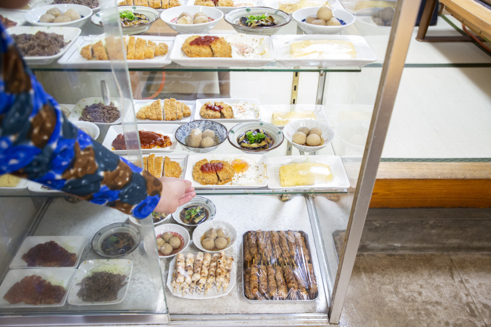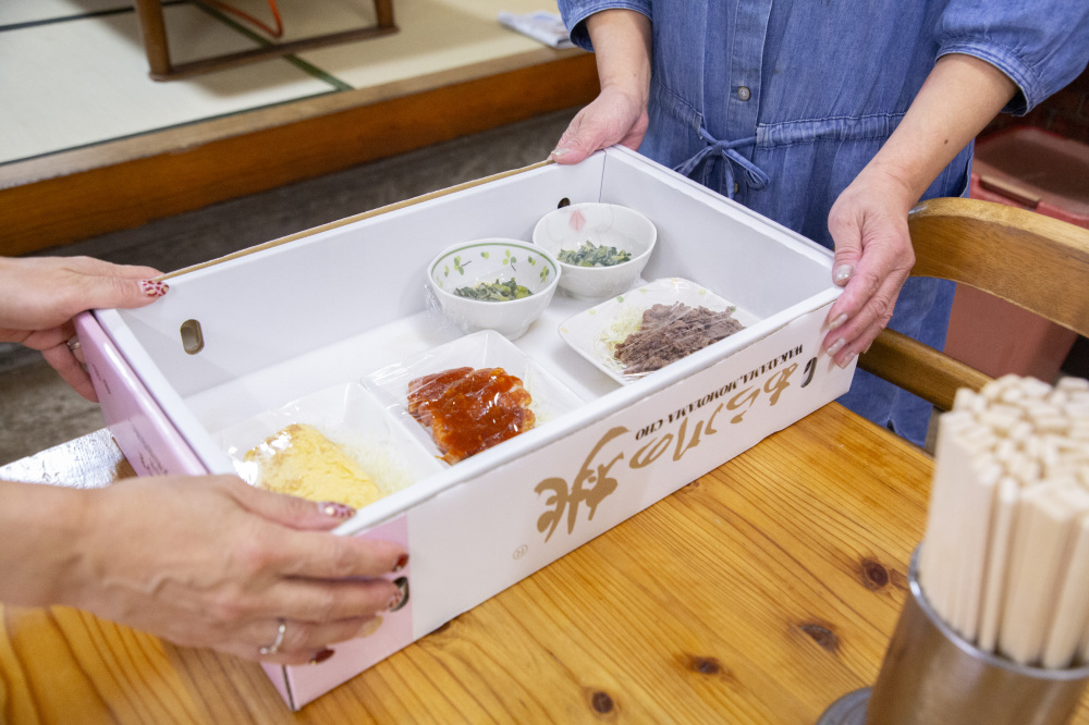 「うちはうどん屋からはじめたから、うどんがおいしい。鰹と昆布でとっただしを使って、おあげは、ふんわり甘く炊いて。中華そばも、煮物を煮るのも、うどんのだしを使っています」と恵子さん。中村屋の味はもちろん、恵子さん夫婦の人柄は、地域の宝としてみんなに愛されています。この日は常連さんが、自分でもってきた段ボールをおかもち代わりに好きなお惣菜を詰めて、家に持ち帰るところに遭遇しました。