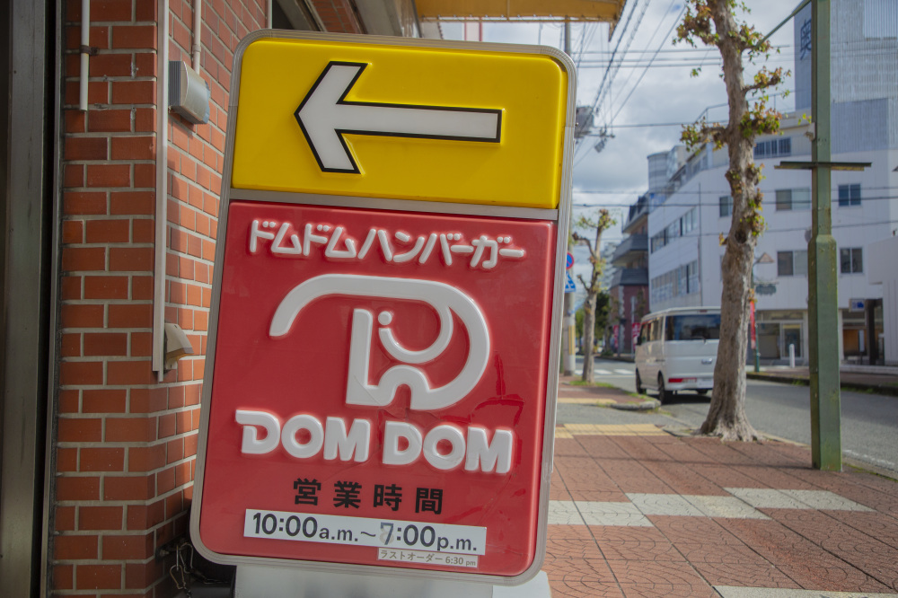 1970(昭和45)年に設立された、日本初のハンバーガーチェーン店「ドムドムハンバーガー」の、日本最古の店舗が海南市にあると、随分前から和歌山の友人に聞いていました。店舗は、昔ながらのショッピングセンターの1階にあり、裏手の駐車場がSNSで話題になったことで、今では“昭和レトロファン”からも注目を集める存在に。駐車場には、「ドムドム」という文字と、マスコットキャラクターの「どむぞうくん」が、白いペンキで描かれています。SNSの投稿者は、ドムドムハンバーガーの私設ファンクラブ「ドムドム連合協会」のメンバー。以前は国内に数百あった店舗も、現在は29店(2025年1月時点)までに減少。けれども根強いファンがついて、海南FC店も客足が絶えません。