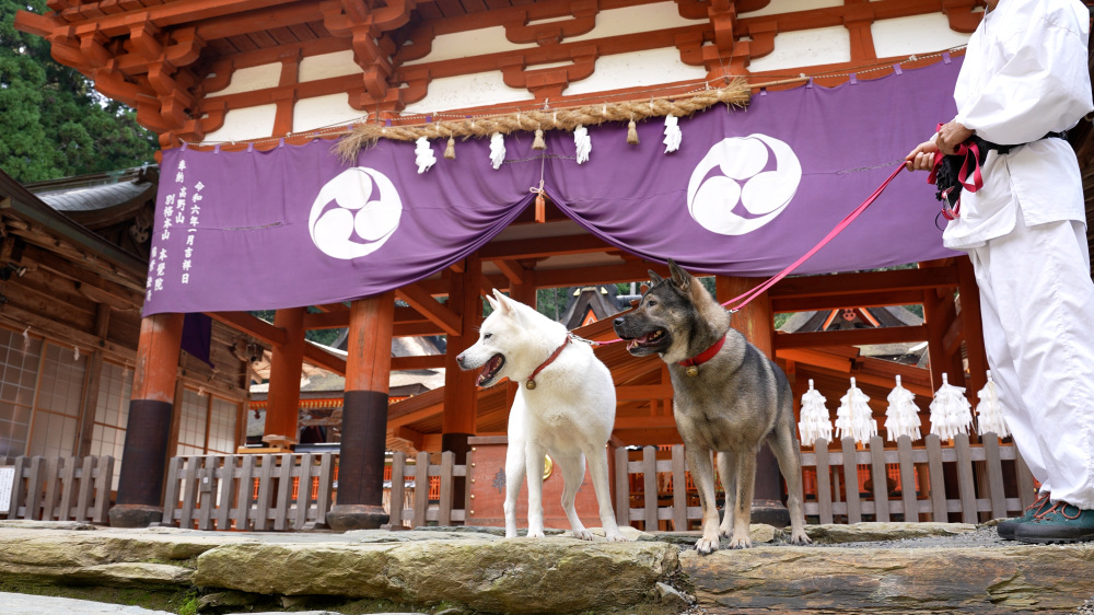 白と黒の紀州犬の親子「すずひめと大輝」が奉納されて、現代のご神犬として活躍をしています。