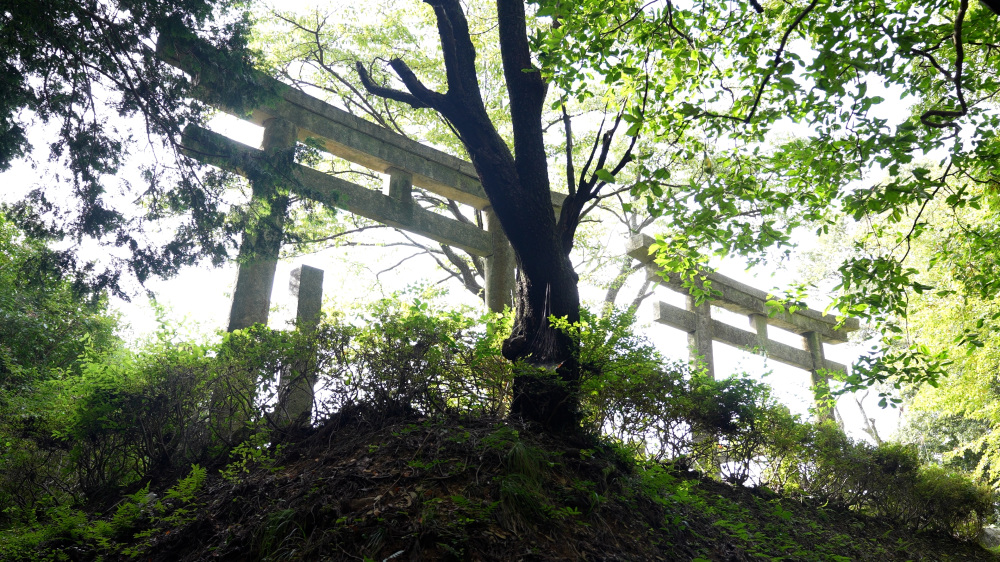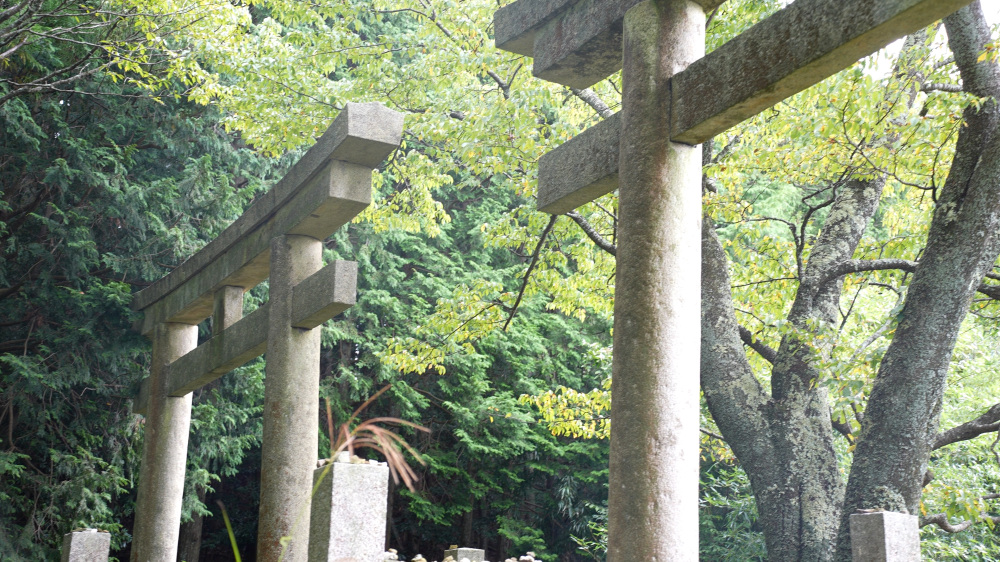 町石道に建つ「二ツ鳥居」は丹生都比売神社の鳥居です。高野詣での正式な習わしは、「この二ツ鳥居から一旦天野に降りてきて、丹生都比売神社を参拝してお祓いを受け、そして町石道に戻って高野山へ進む」とされていました。
