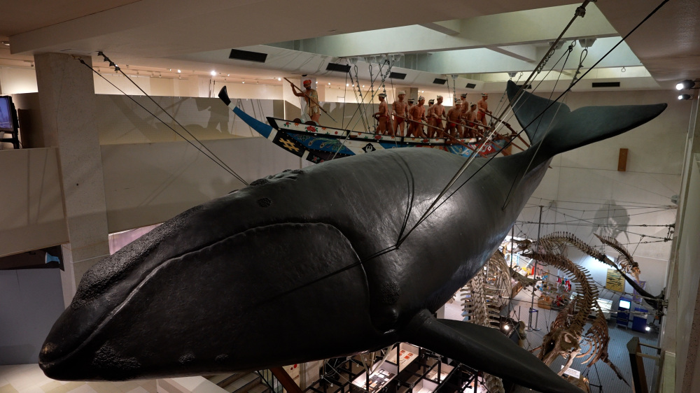 1階ホールでは、江戸時代後期に全盛期を迎えた「網掛釣取法(あみかけつりとりほう)」の巨大ジオラマも必見です。3階まで続くさまざまな展示を通じ、昔からのクジラと人間の関わり、そしてこれからの共生について深く学ぶことができます。