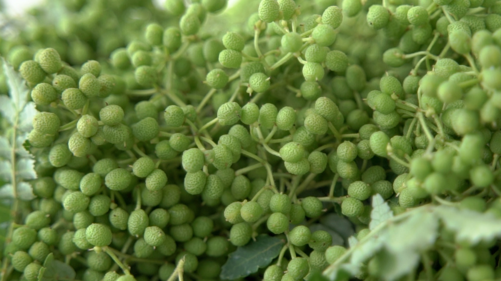 ぶどう山椒は、山椒の品種のひとつです。有田川町遠井は、ぶどう山椒の発祥の地。「江戸時代の後期に、ある方の庭先で突然変異したものを、代々、接ぎ木しながら増やしてきたと伝わっています。発祥の地だからこそ生産できる国内最高品質の山椒の製品を日本に広めていきたいです。」