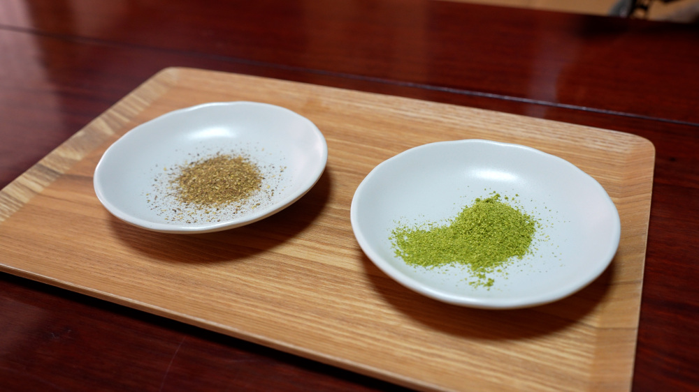 原材料を選別に選別を重ねた粉山椒 「原材料の選別を繰り返し、一番いい状態のものだけを粉に挽いています。世の中にぶどう山椒の商品はたくさん出ていますが、高品質なものは少ないので本物を味わってもらいたいです。」