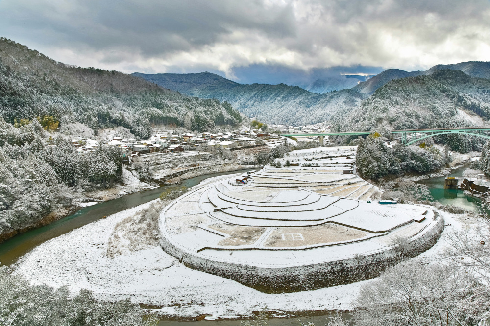 あらぎ島は、日本の棚田百選に選ばれた和歌山を代表する絶景スポットです。蛇行する有田川に囲まれた扇形の棚田は、日本の原風景を象徴する風景として多くの人を魅了しています。春はみずみずしい緑、秋は黄金色に輝く稲穂、冬は凛とした静寂に包まれ、季節ごとにまったく異なる表情を見せてくれます。さらに朝焼けや夕焼けの時間帯には、空の色を映し込んだ写真が撮影できることも。色々な季節に訪れて、ぜひご自身のカメラに収めてみてください。