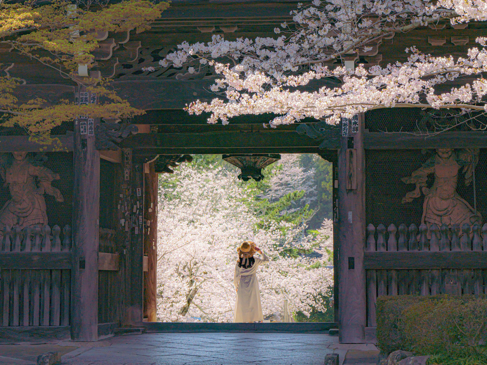 能や歌舞伎で広く知られる悲恋の物語「安珍清姫伝説」の舞台となった道成寺は、桜の名所としても有名です。 本堂横にあるエドヒガンやシダレザクラが参拝者を楽しませます。