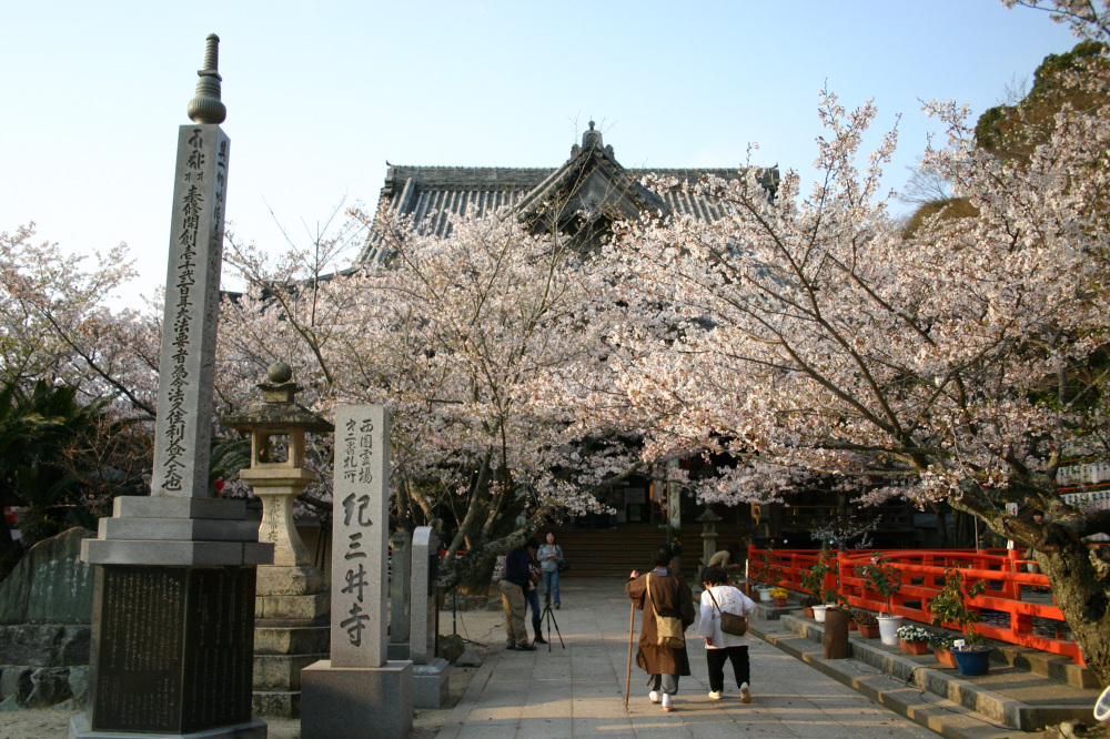 西国三十三ヶ所観音霊場第三番札所として知られる古刹 「粉河寺」。 春になると境内は桜やサツキの花で彩られ、美しい光景が広がります。