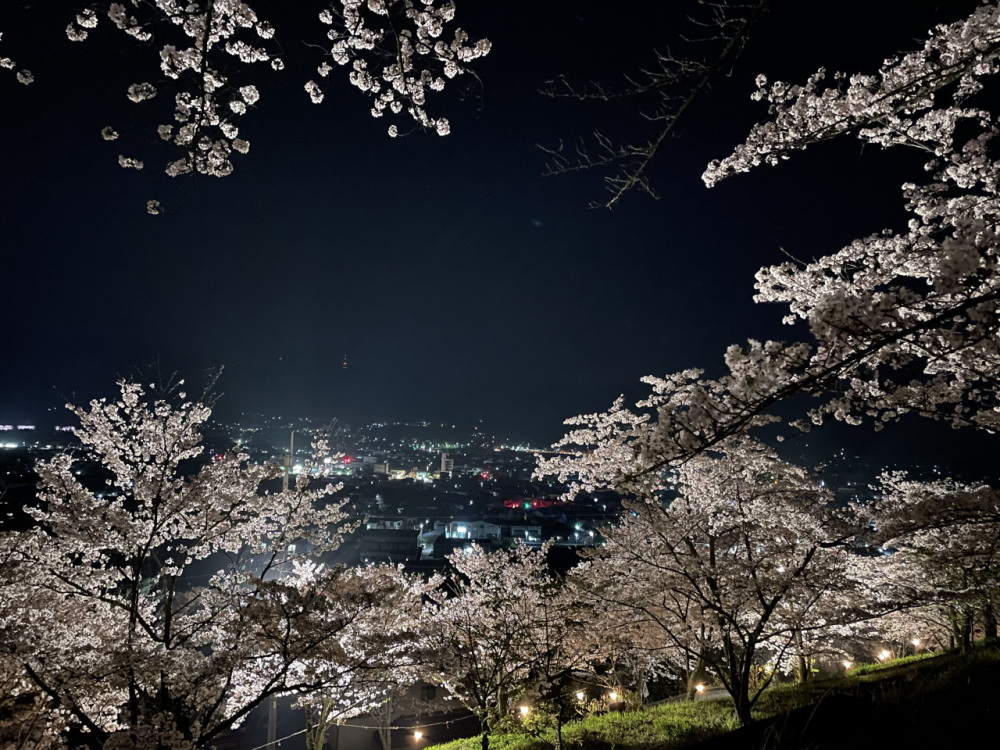 標高 285mの百合山山頂にある「最初カ峰展望所」は夜景スポットとして有名ですが、春は桜の名所でもあります。開花期間中は、ライトアップも実施。