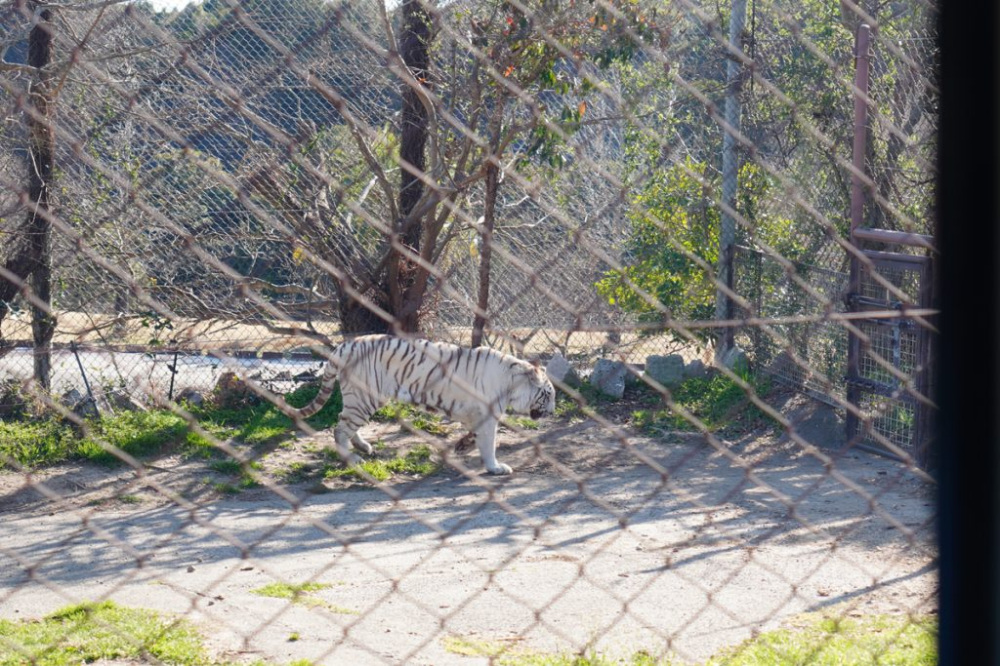 肉食動物エリアでは、ライオンがいるか車内から窓に張り付いて探したり、チーターの足の速さに驚いたり。 なかでもホワイトタイガーは「かわいい!」と人気でした。ホワイトタイガーはインド周辺に生息しているベンガルトラの白色変種で、野生ではほとんど見ることができないそう。