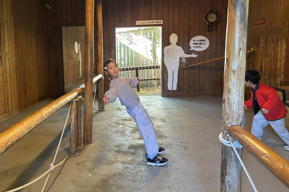 まずは、空港から車で約7分の「白浜エネルギーランド」へ。「人と自然のエネルギー」をテーマにした体験型テーマパークです。といっても堅苦しいものではなく、VRを使った映像アトラクションや、トリックアートや迷路などの体験アトラクションなど、子どもがワクワクする要素が満載!